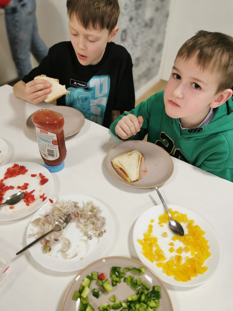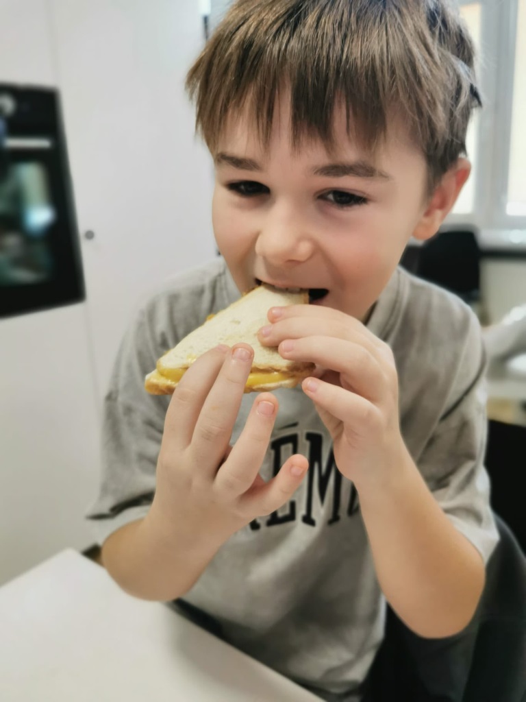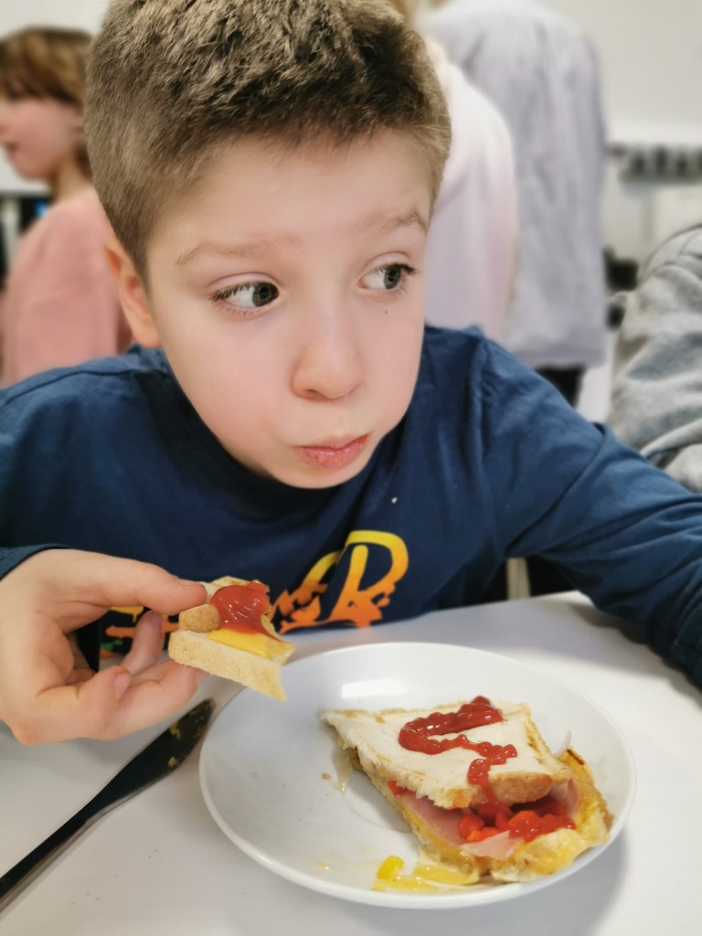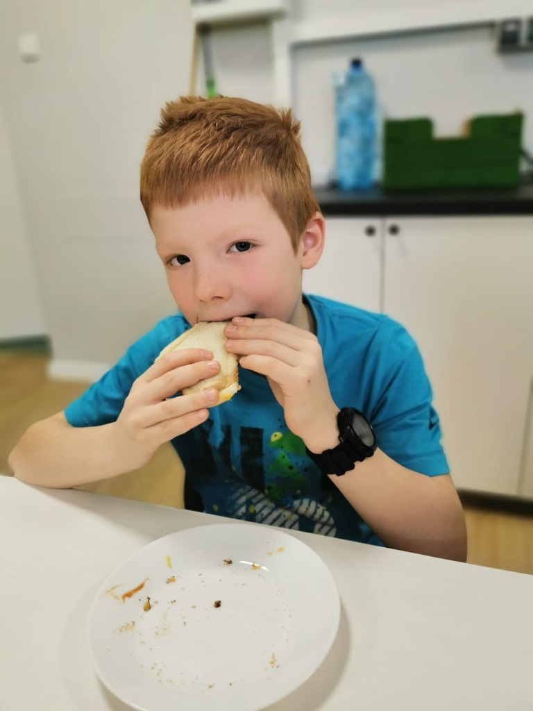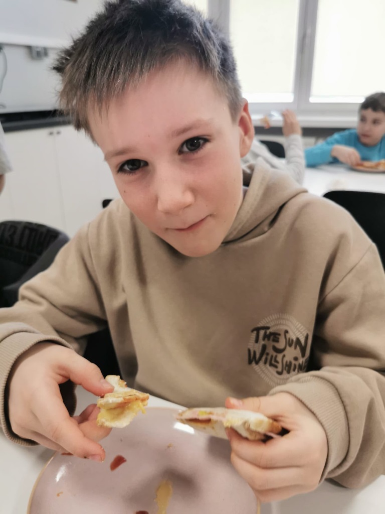 Postanowiliśmy spróbować nowych smaków i przygotować… pyszne tosty! Uczniowie sami kroili warzywa, komponowali składniki i z wielkim zaangażowaniem tworzyli swoje kulinarne dzieła. Było zdrowo, kolorowo i bardzo smacznie