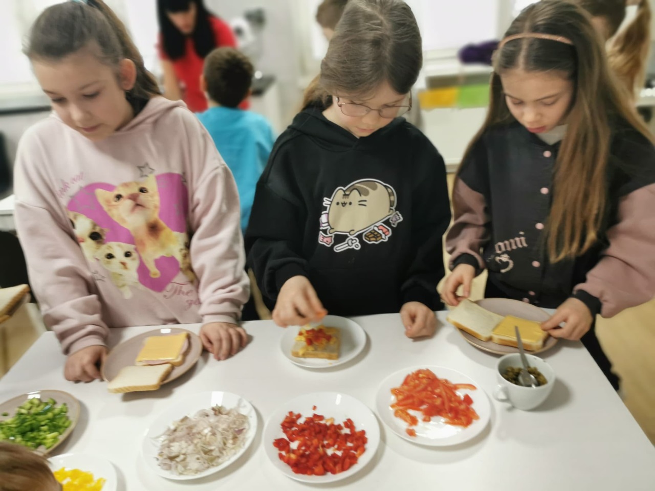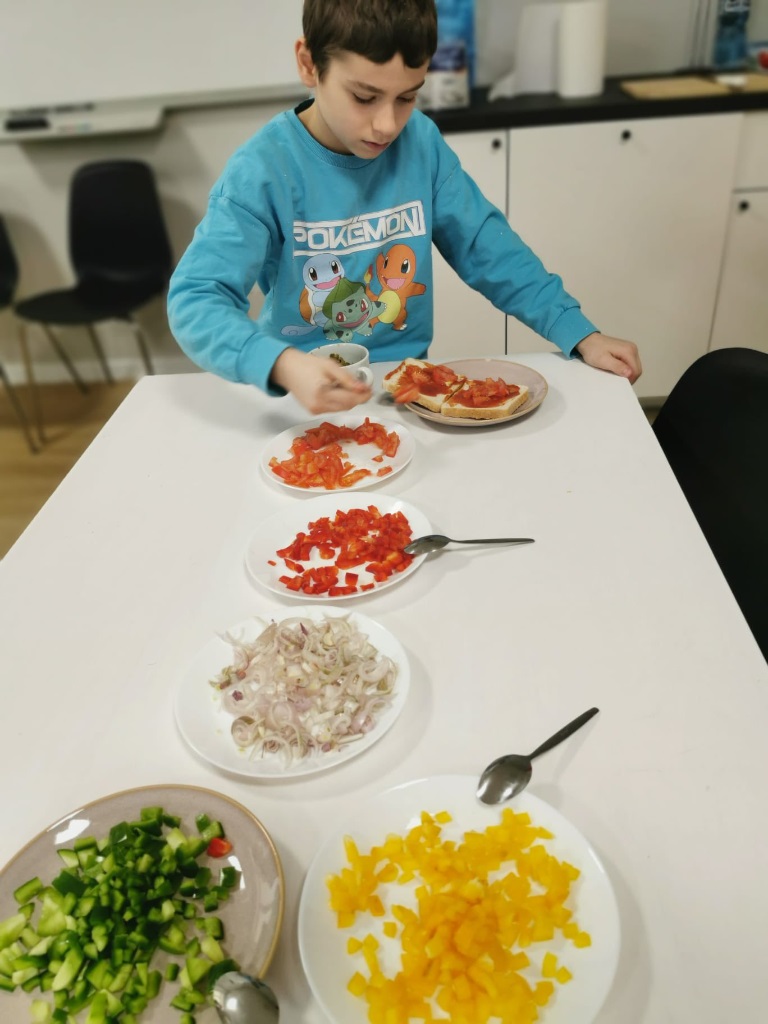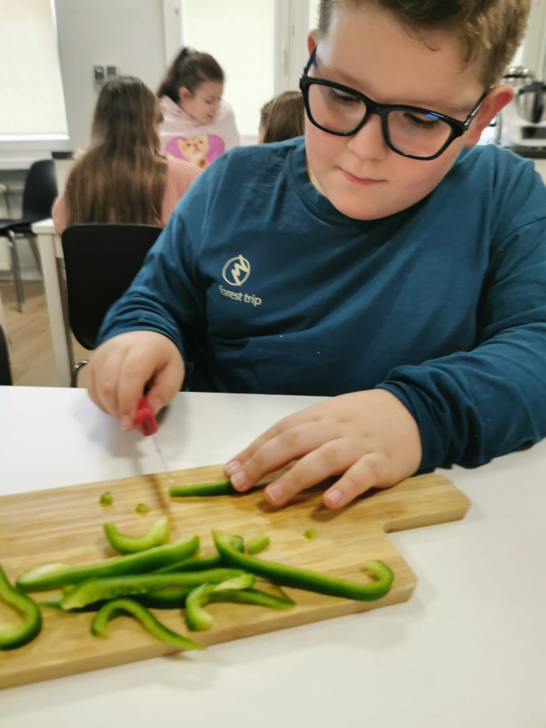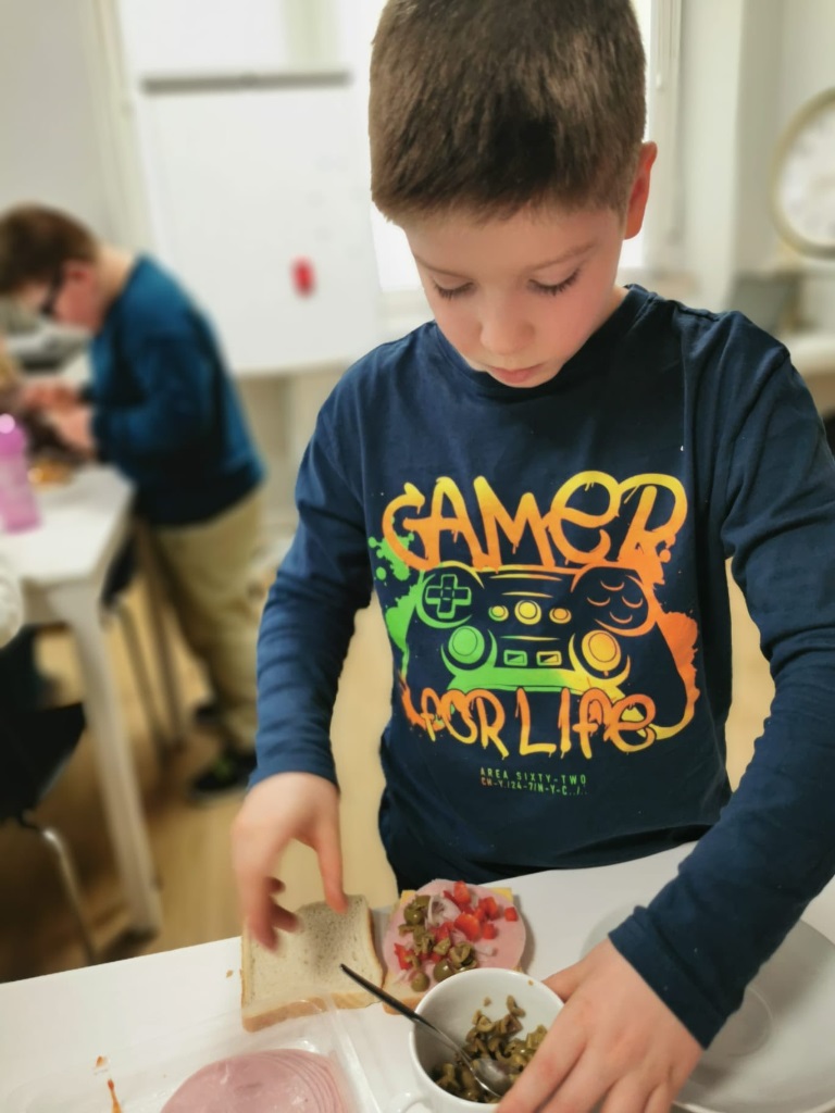 Postanowiliśmy spróbować nowych smaków i przygotować… pyszne tosty! Uczniowie sami kroili warzywa, komponowali składniki i z wielkim zaangażowaniem tworzyli swoje kulinarne dzieła. Było zdrowo, kolorowo i bardzo smacznie