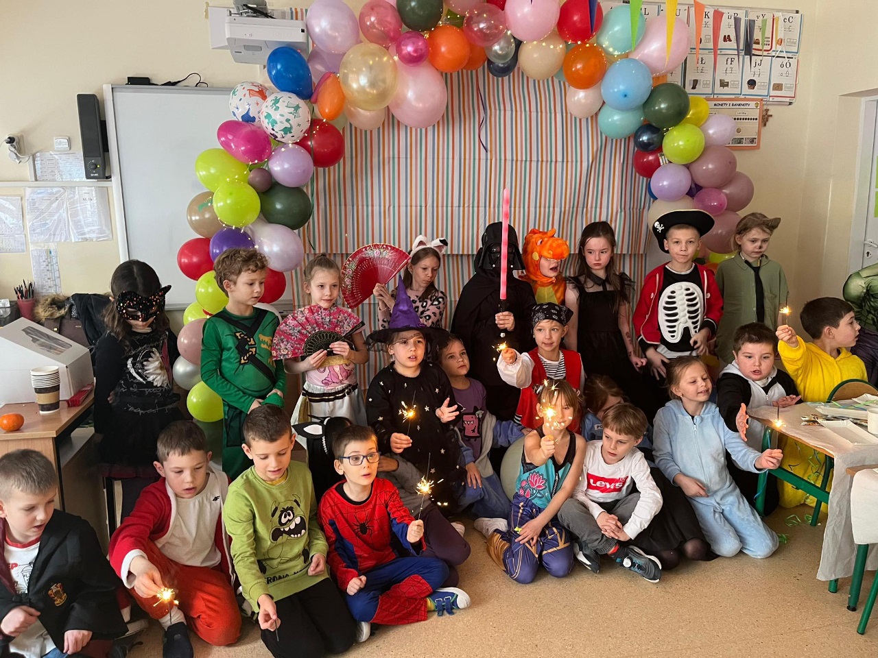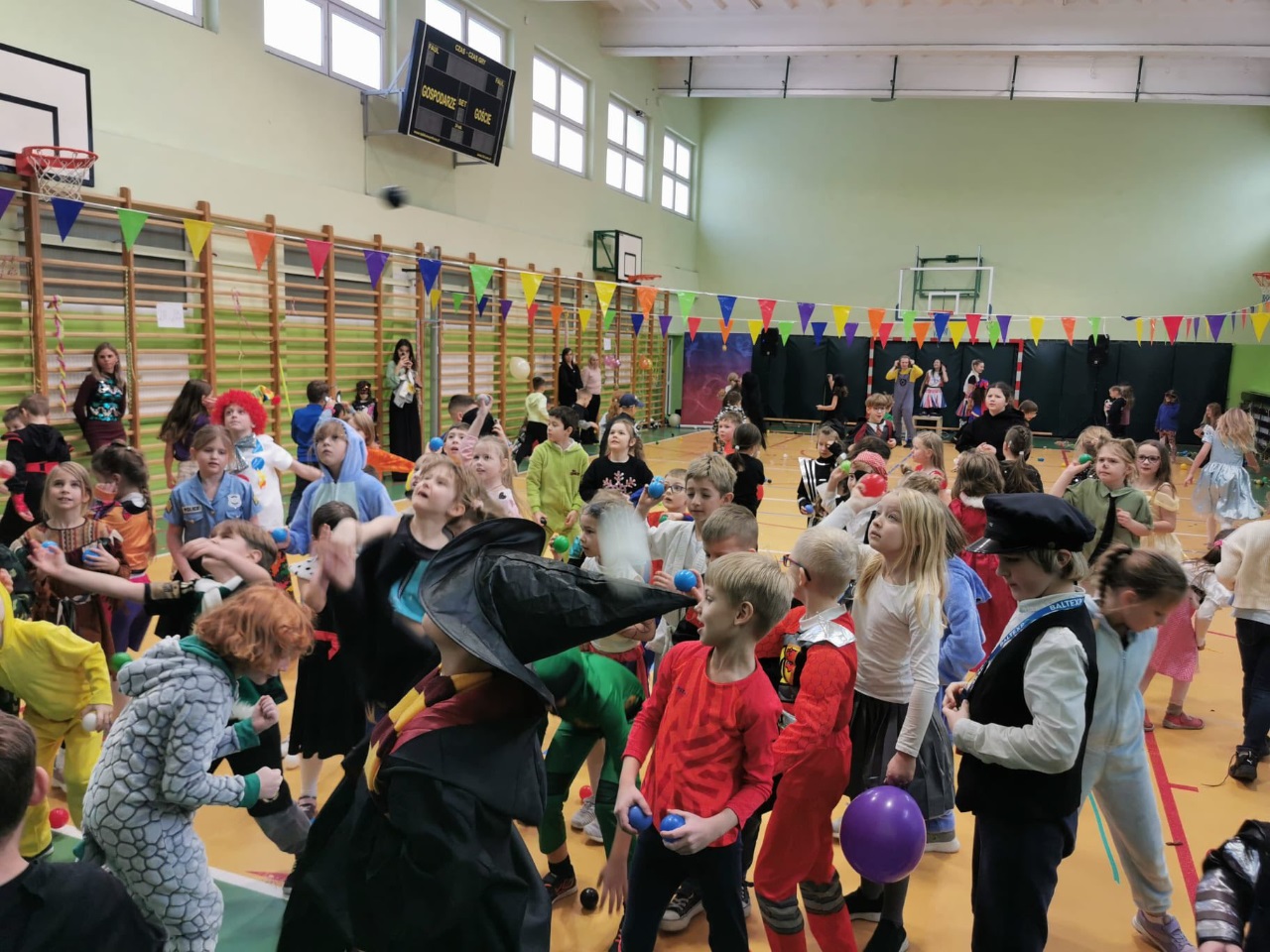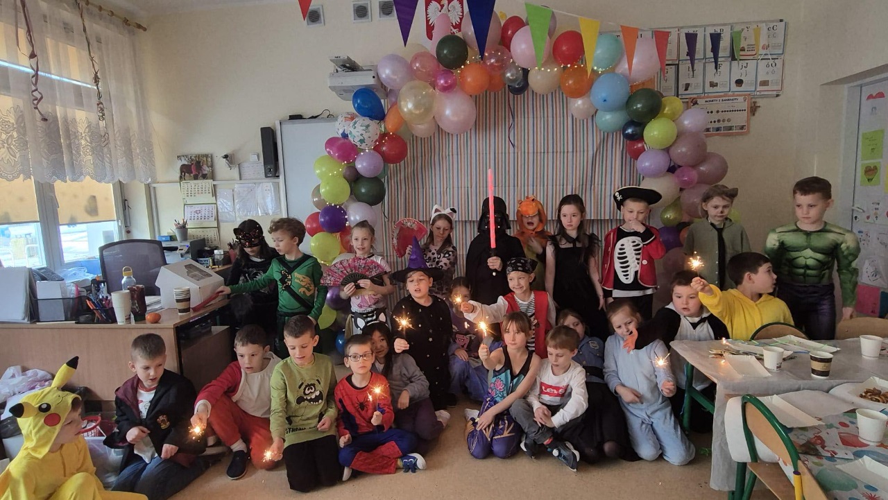 W naszej szkole odbył się bal karnawałowy dla uczniów klas 0–3. Było super! Dzieci brały udział w wesołych zabawach i tańcach, a wszystkim dopisywał świetny humor. Na uczestników czekała także pyszna pizza. Uczniowie zachwycili pięknymi, kolorowymi i bardzo kreatywnymi strojami. Bal dostarczył wszystkim wielu radości i na długo pozostanie w naszej pamięci. ![]()