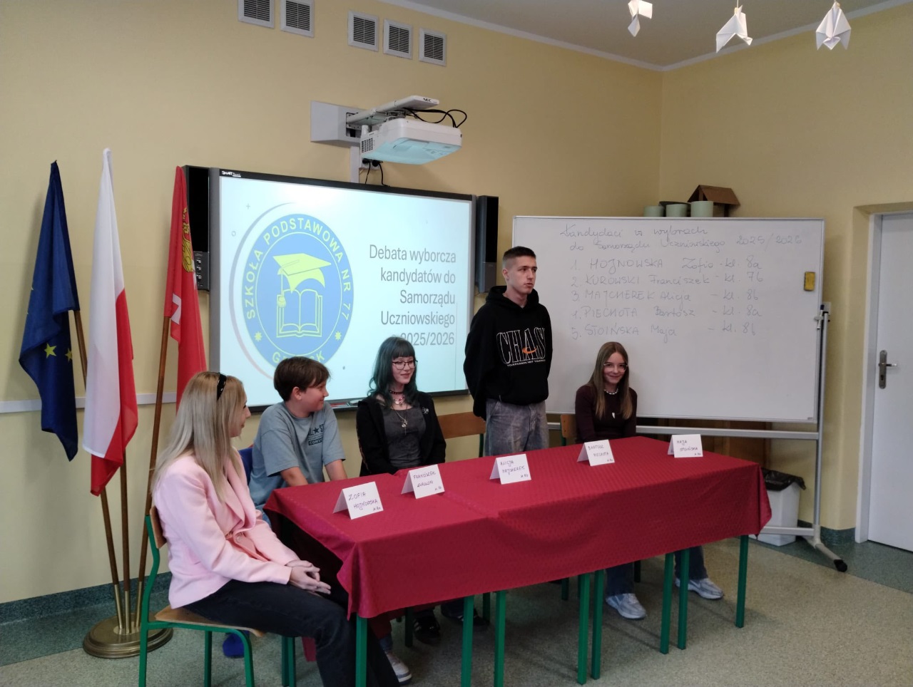 Debata przedwyborcza już za nami - była to dla nas żywa lekcja demokracji. Dziękujemy Kandydatom za profesjonalne podejście i rzeczową argumentację, a przedstawicielom Samorządów Uczniowskich za przygotowanie pytań. Mamy nadzieję,że podjęcie decyzji, na kogo zagłosować w czwartek, stanie się tym samym choć trochę łatwiejsze.