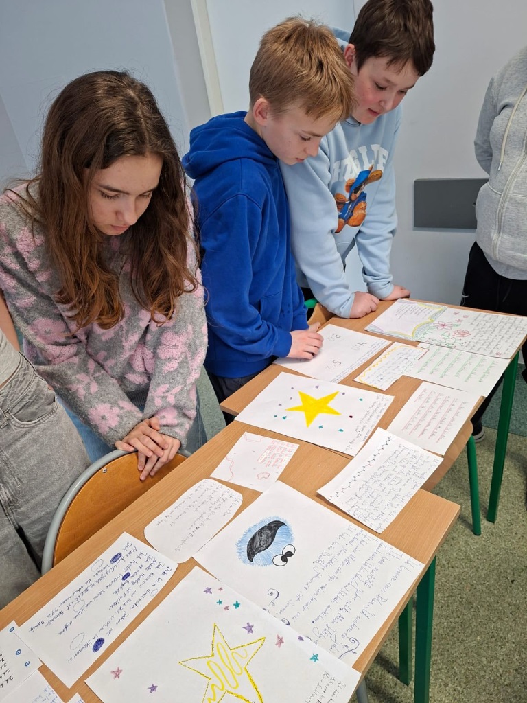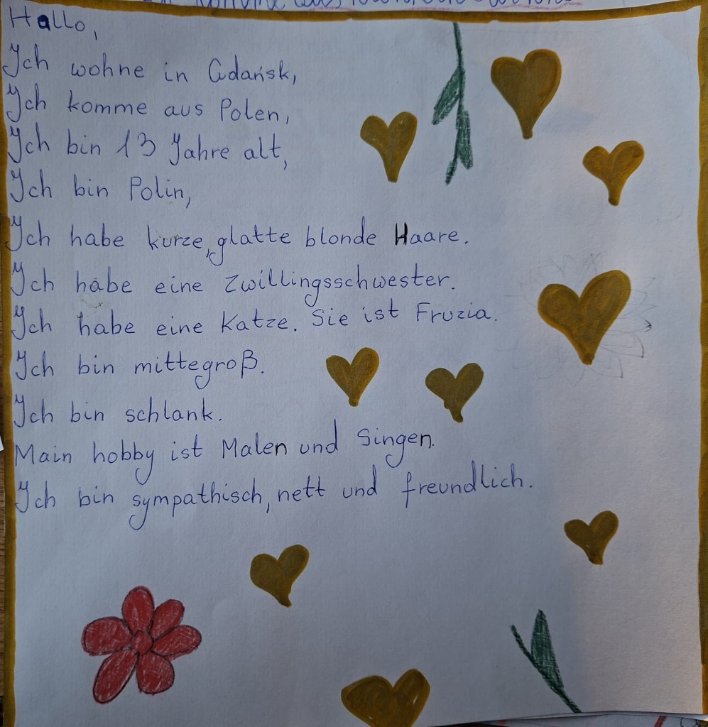 "Der Freundschaftstag - Dzień Przyjaźni" pojawił sie także na jezyku niemieckim. Uczniowie klas szóstych mieli okazję oderwać się od wszelkich komunikatorów internetowych ozdabiając i pisząc odręcznie kartki o sobie szukając swojej bratniej duszy. Towarzyszyły temu zadaniu chwile zaskoczenia, autentyczność i budowanie pozytywnych relacji. ![]()
