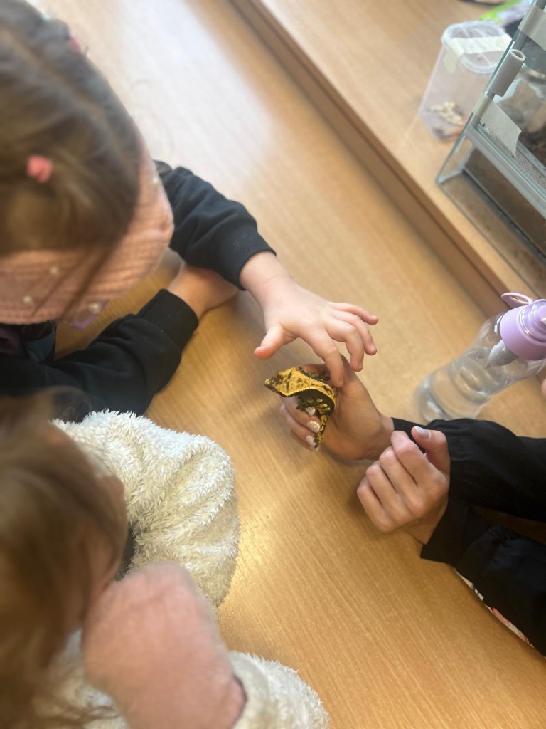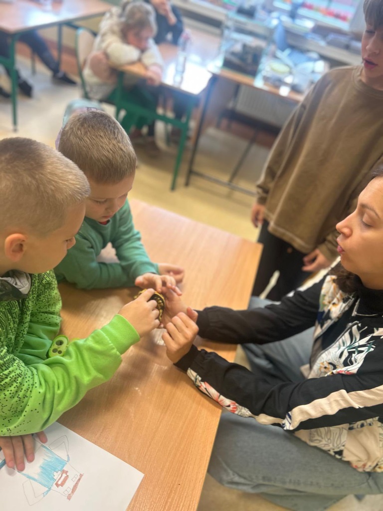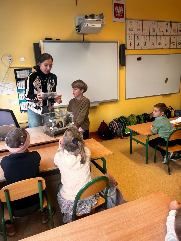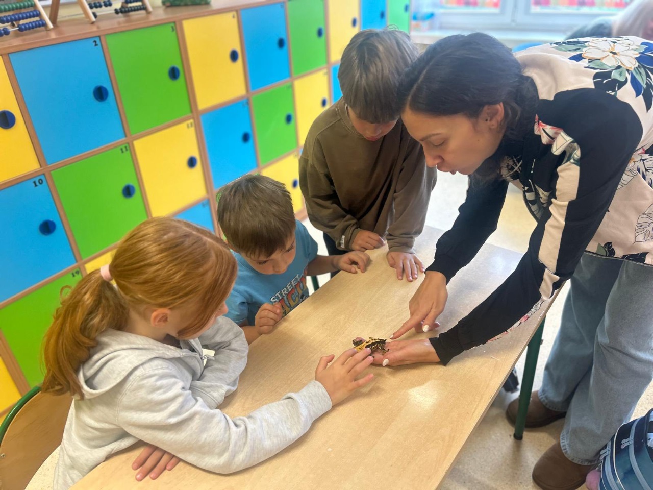 Dzieci nie tylko mogły obejrzeć te zwierzęta z bliska, ale również pogłaskać je i przekonać się, że w kontakcie z człowiekiem są spokojne i bezpieczne. Uczniowie dowiedzieli się, czym zwierzęta te się odżywiają, jakie wymagania mają w hodowli domowej, jak rosną i czego potrzebują, aby dobrze się rozwijać.