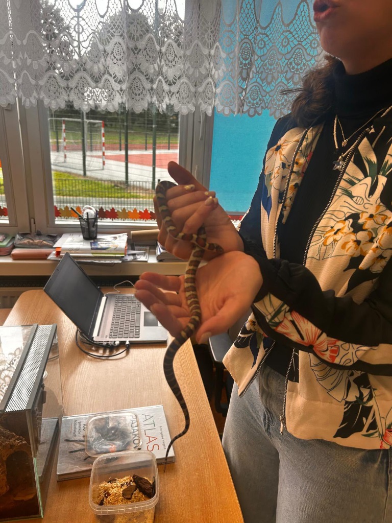 Podczas spotkania uczniowie mieli okazję poznać i zobaczyć na żywo różne zwierzęta, które na co dzień budzą duże emocje, a nierzadko także niepokój. Dzięki prezentacji każdy mógł się przekonać, że przy odpowiedniej wiedzy i trosce można je hodować w warunkach domowych, ciesząc się ich niezwykłym pięknem i zachowaniami.