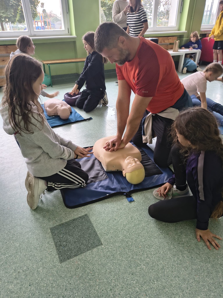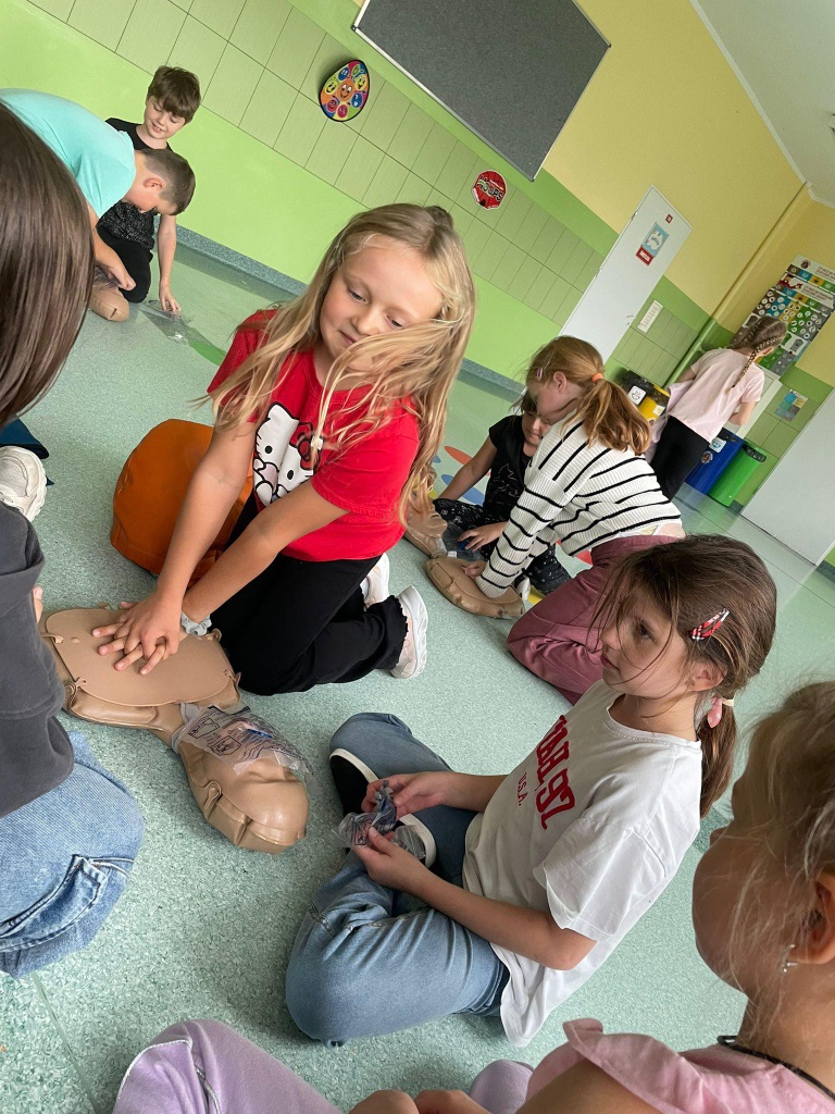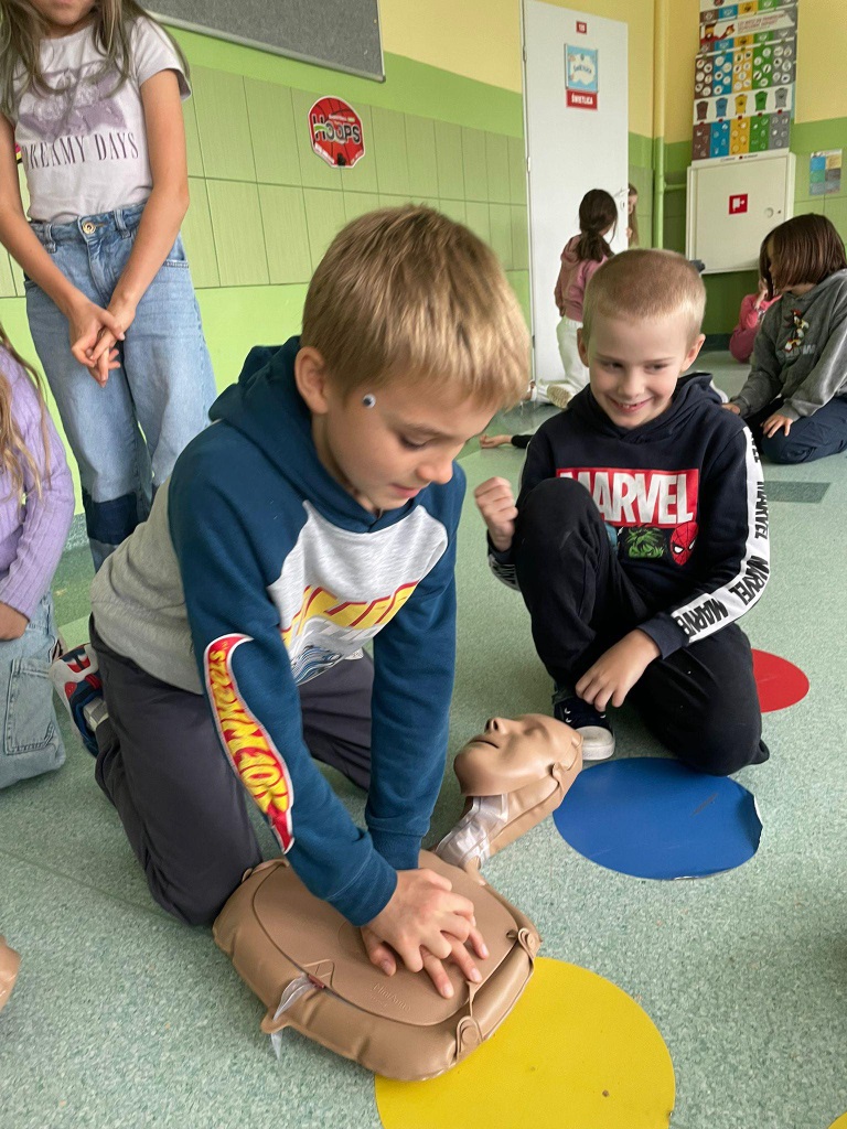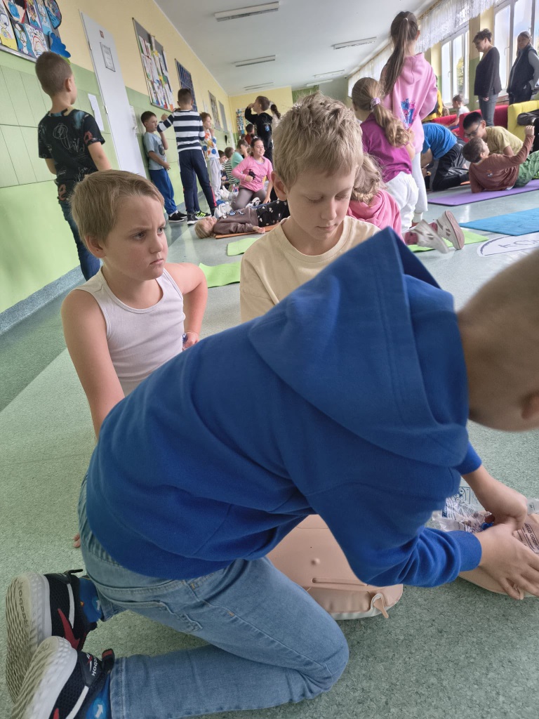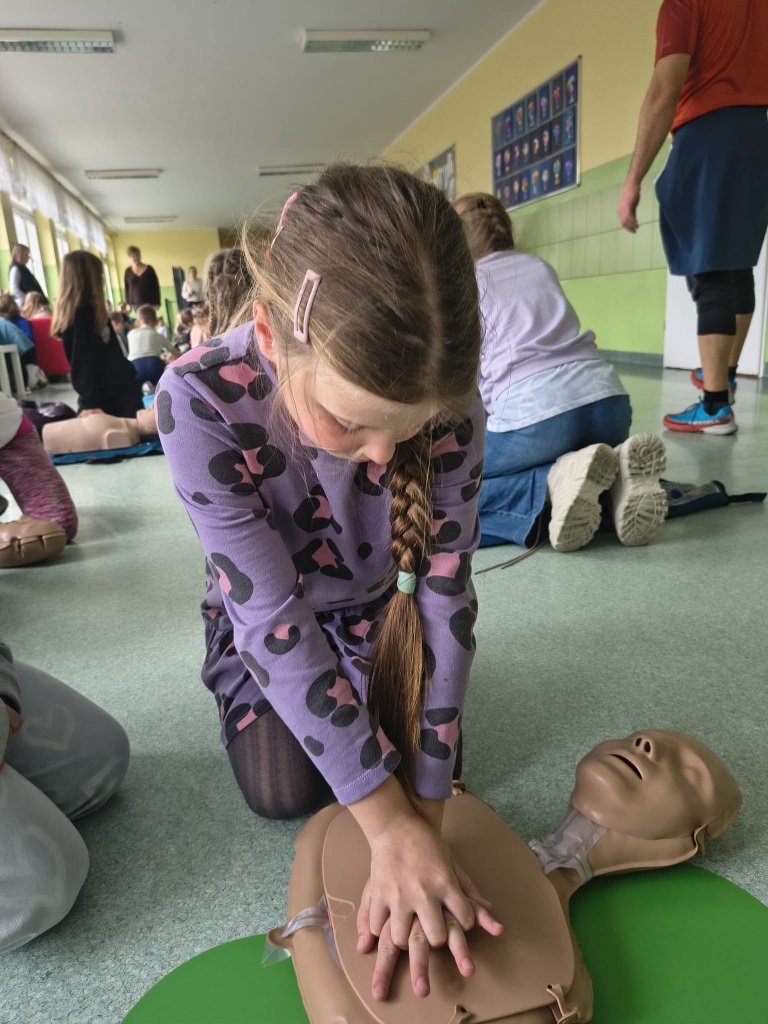16 października obchodzimy Europejski Dzień Przywracania Czynności Serca. Ma on na celu zwiększenie świadomości społecznej na temat znaczenia natychmiastowej pierwszej pomocy w przypadku nagłego zatrzymania krążenia. Prawidłowo wykonany masaż serca zwiększa szanse na przeżycie poszkodowanego nawet do 50%. Nasi uczniowie tego dnia wzięli udział w biciu rekordu w udzielaniu pierwszej pomocy w ramach programu Ratujemy i Uczymy Ratować fundacji WOŚP.