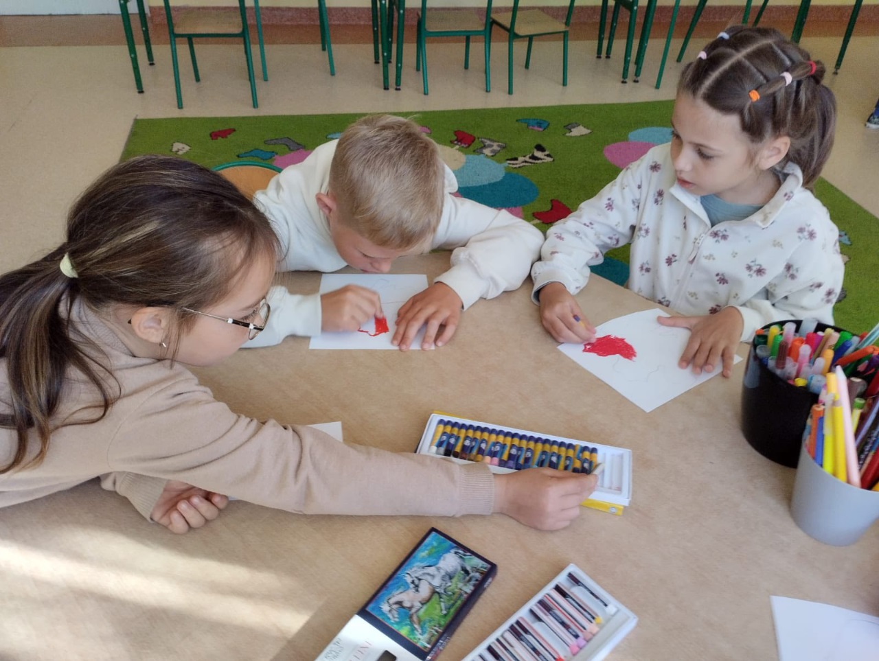 Za oknem trwa kalendarzowa jesień, która także zawitała do świetlicy szkolnej. Dzieci wykonały dekorację zawierającą najpiękniejsze dary i uroki jesieni.