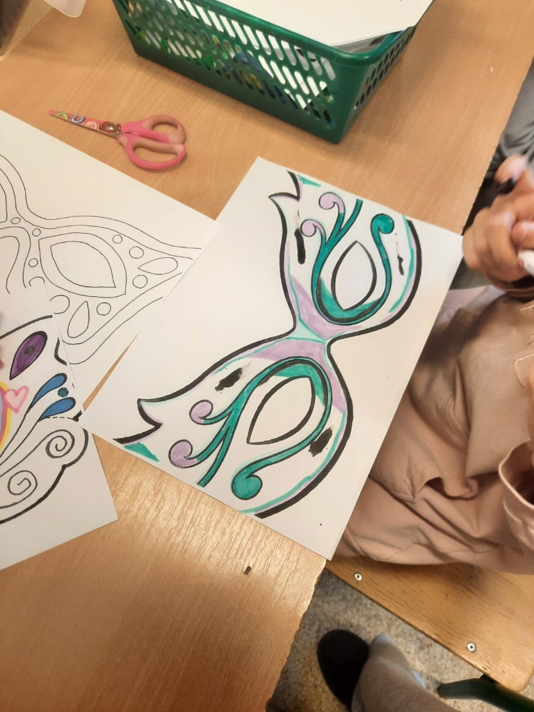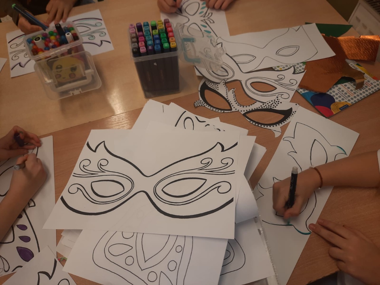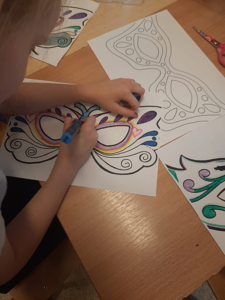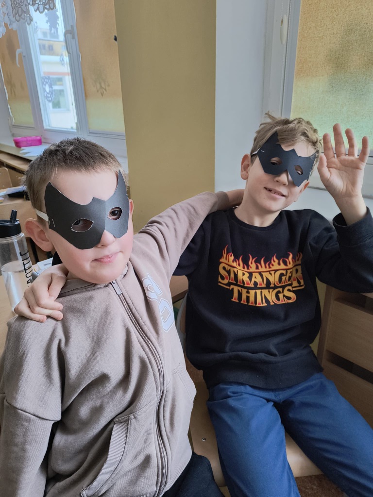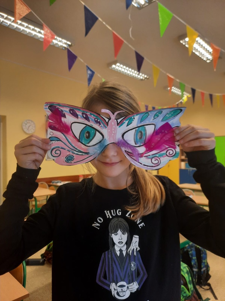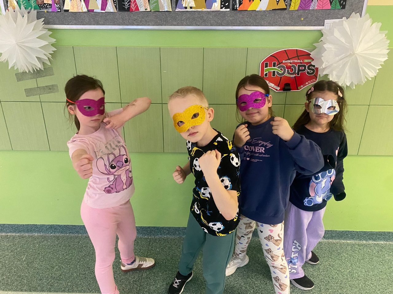 W świetlicy szkolnej także trwa karnawał. Dzieci wykonały maski dowolną techniką, ozdabiając je przeróżnymi materiałami tj. brokat, piórka, czy cekiny.