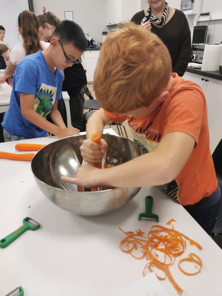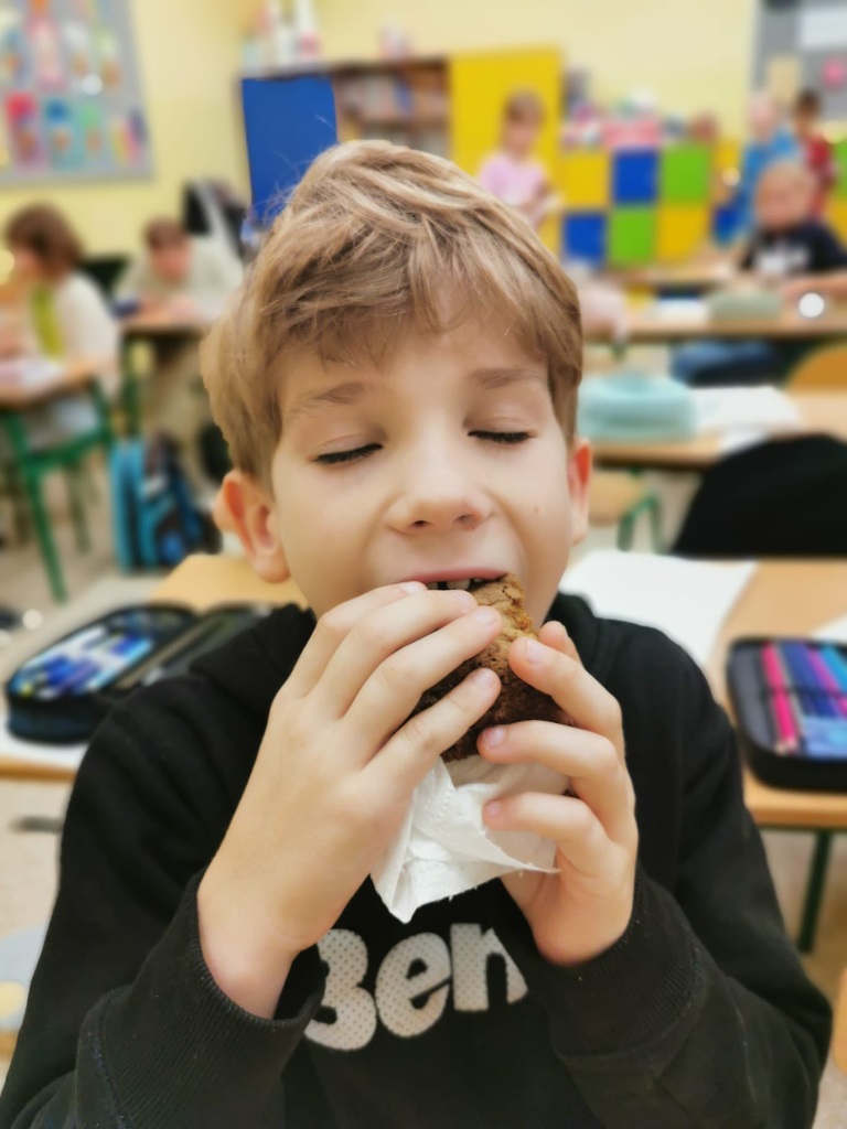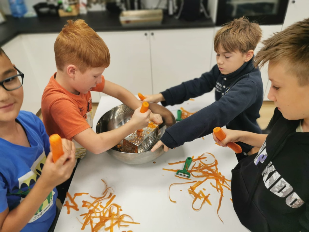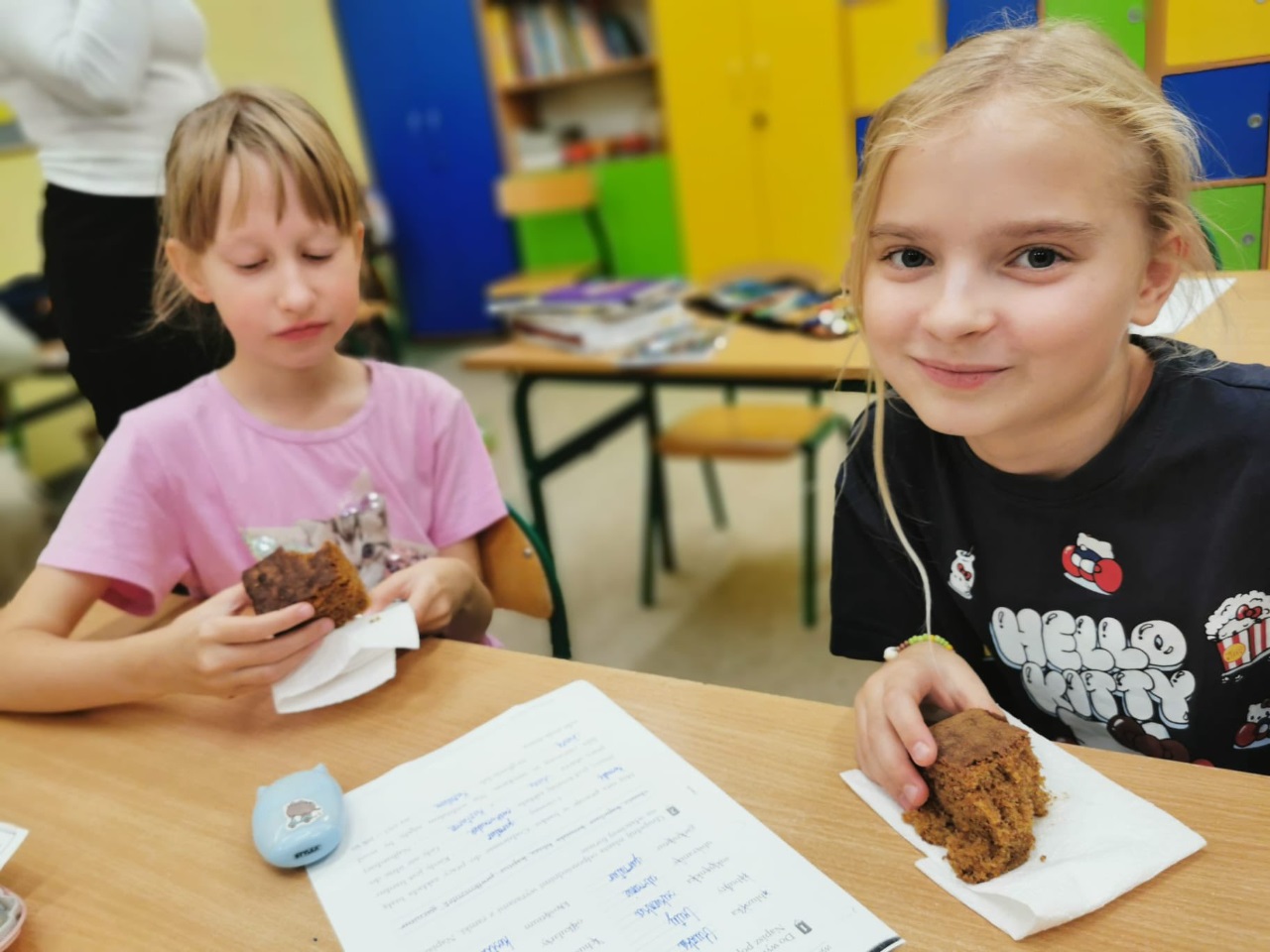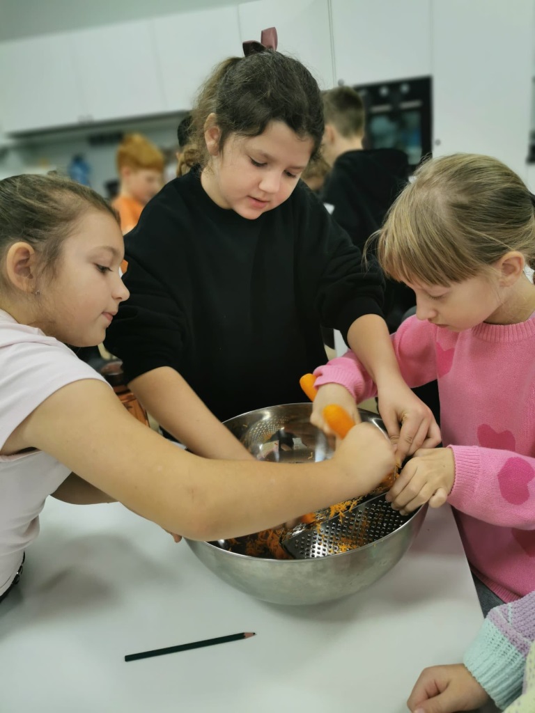 Podczas zajęć kulinarnych uczniowie klasy 3a upiekli pyszne ciasto marchewkowe! Dzieci samodzielnie obierały, myły i tarły marchewki, ucierały jajka oraz mieszały składniki. W klasie unosił się wspaniały zapach, a efekt ich pracy był naprawdę smaczny!