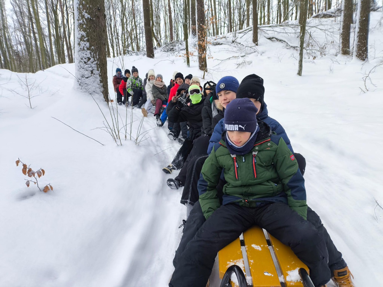 Dziś razem z klasą 7b oraz 6a przeżyliśmy prawdziwie zimową przygodę, której długo nie zapomnimy! Wybraliśmy się na kulig, a śnieżna aura dopisała idealnie.