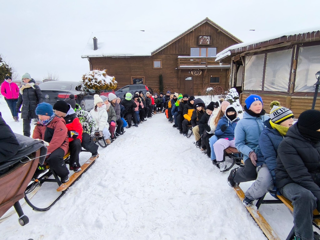 Największą atrakcją były oczywiście sanki ciągnięte przez konie – przejażdżka wśród zimowych krajobrazów była jak z bajki. Nie zabrakło śmiechu, okrzyków radości i zachwytów nad piękną, białą trasą.