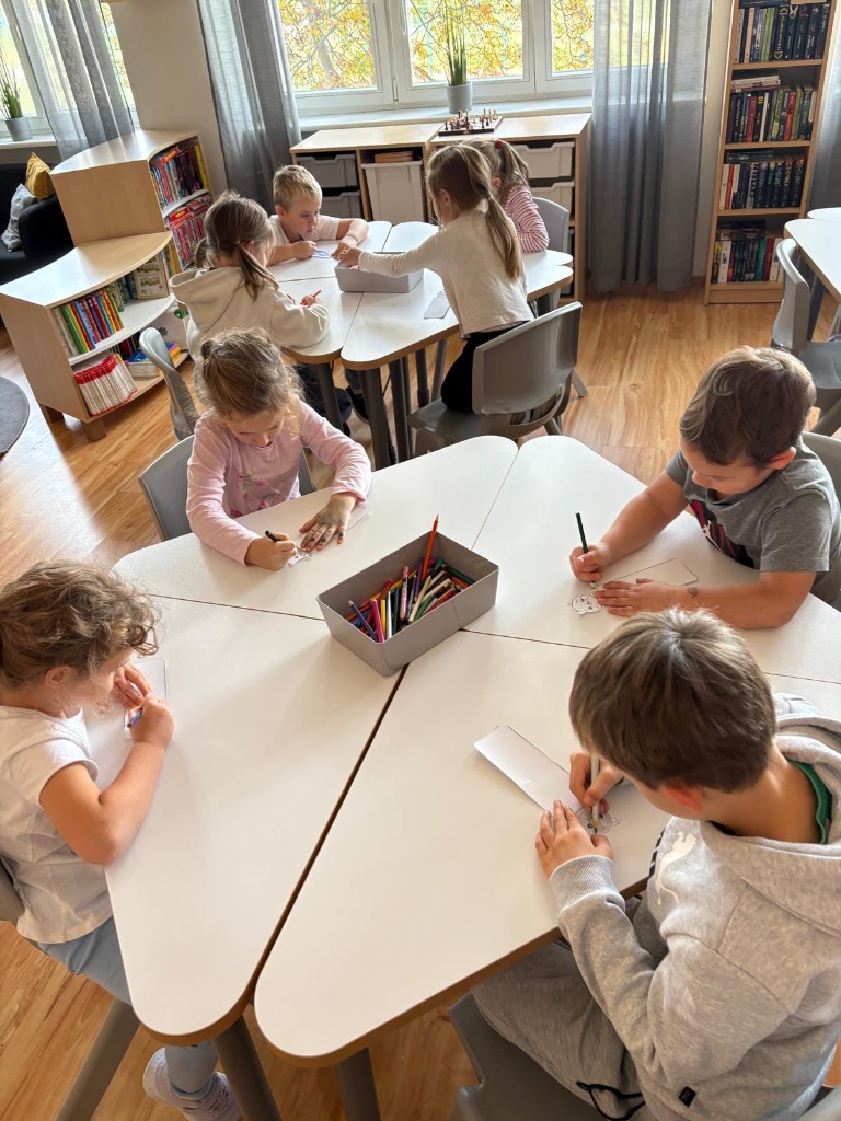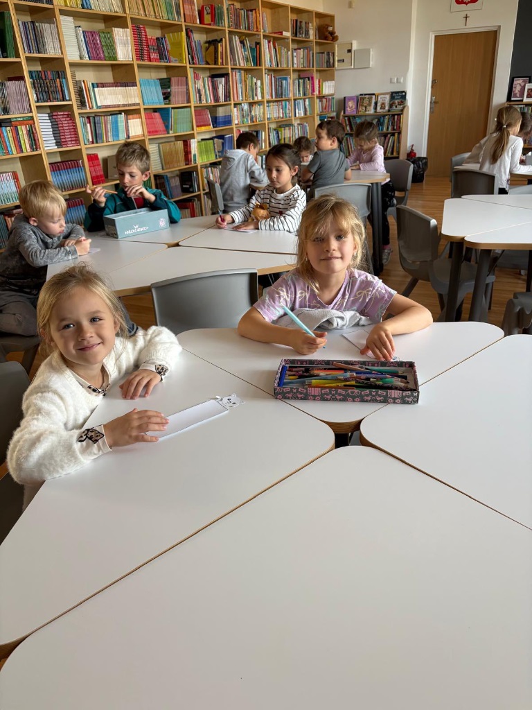 książki,wysłuchały ciekawej bajki, a także rozmawiały o swoich ulubionych książkach i bohaterach literackich. Na zakończenie zajęć nasi czytelnicy wykonali zakładki do książek