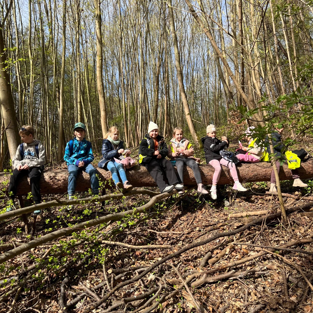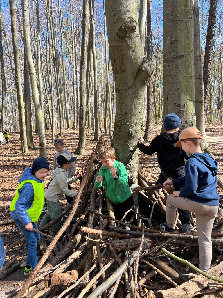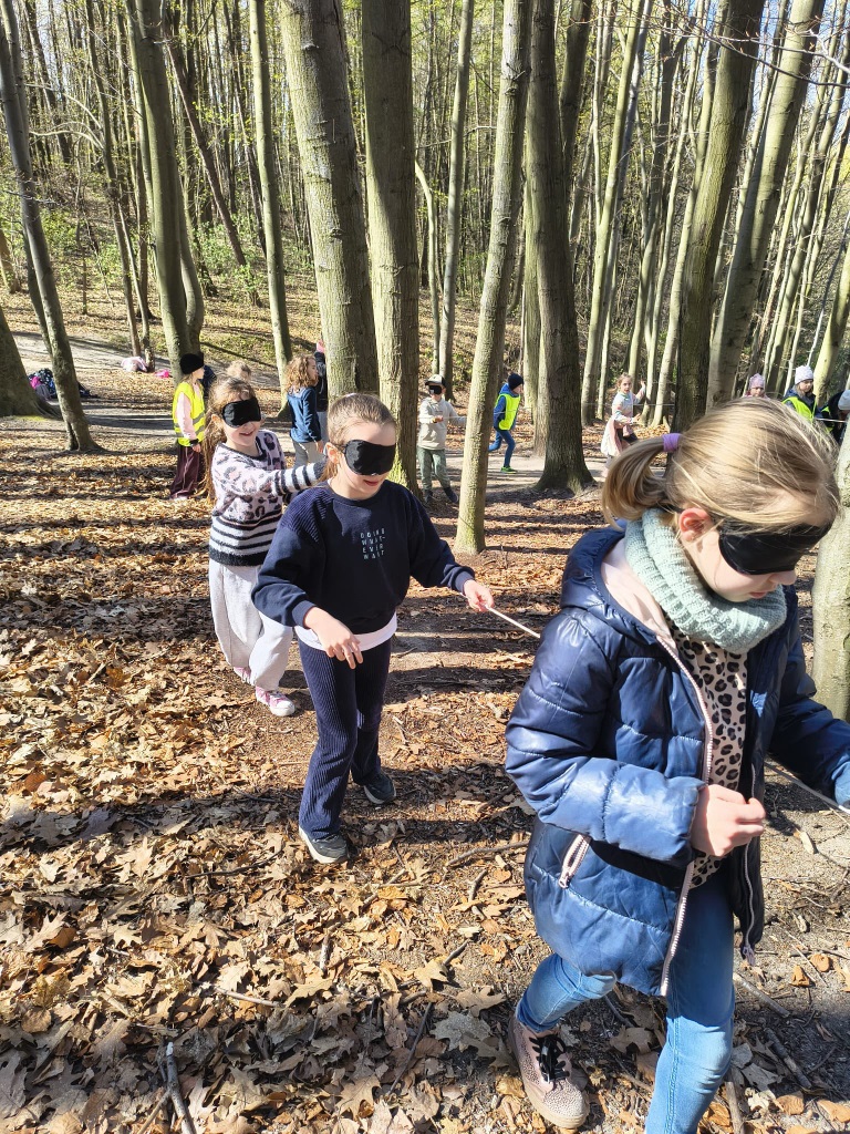 Leśna Banda i wiosenna lekcja w terenie. Uczniowie klasy 2 mieli dzisiaj okazję poznać przyrodę wszystkimi zmysłami i aktywnie spędzić czas na świeżym powietrzu.