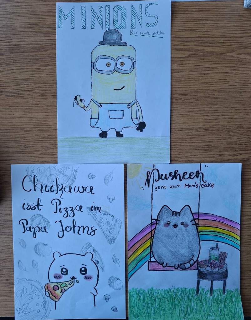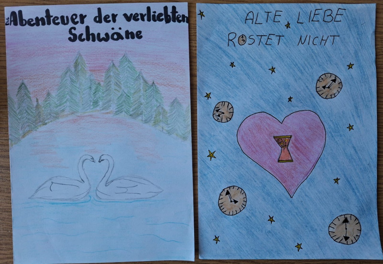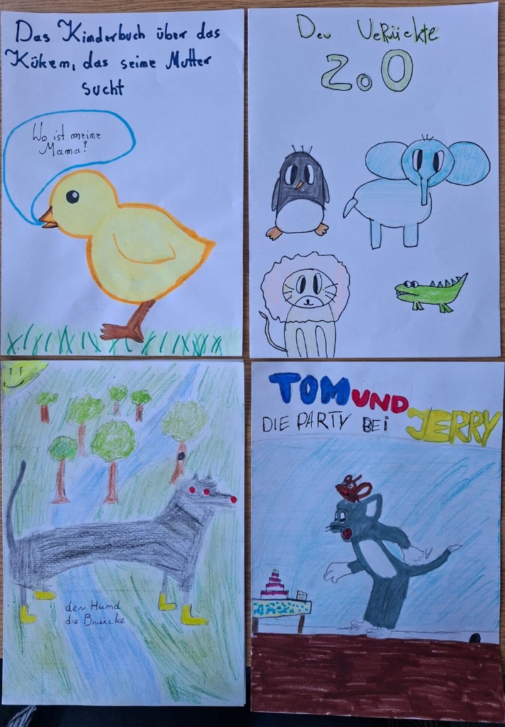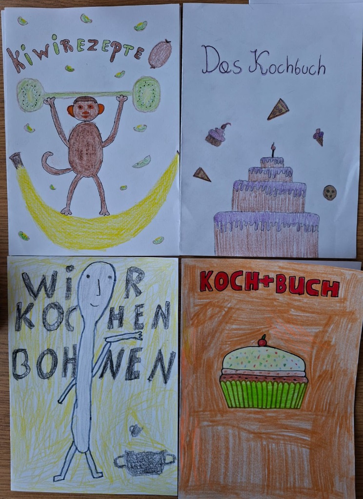 Uczniowie klas ósmych na jezyku niemieckim ćwicząc elementy kultury samodzielnie stworzyli okładki do książek oraz nadali im tytuły. Tytuły te należą do różnych gatunków tj. przygodowych, kucharskich, czy literatury młodzieżowej.