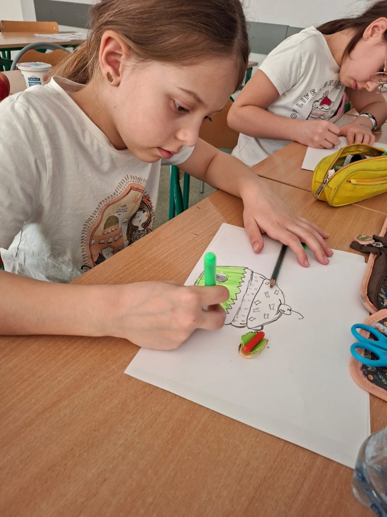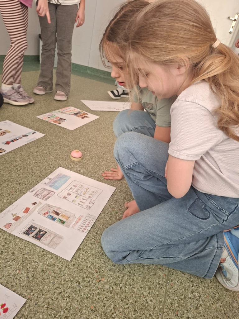 Na zajęciach języka niemieckiego wszystko kręciło się wokół "rund um das Essen", dzieci zamieniły się w klientów i sprzedawców, ćwiczyły zwroty potrzebne w sklepie, produkty spożywcze, nie zapominając o wymarzonym deserze.