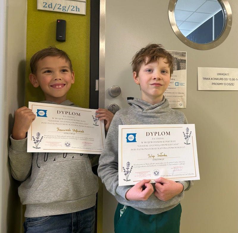 Z przyjemnością informujemy, że uczniowie naszej szkoły: Filip i Franek z klasy 2 oraz Aleksander z klasy 3 – wzięli dziś udział w kolejnym etapie Wojewódzkiego Konkursu Wiedzy „Gdańsk legendą opowiedziany”, organizowanego pod patronatem Pomorskiego Kuratora Oświaty.