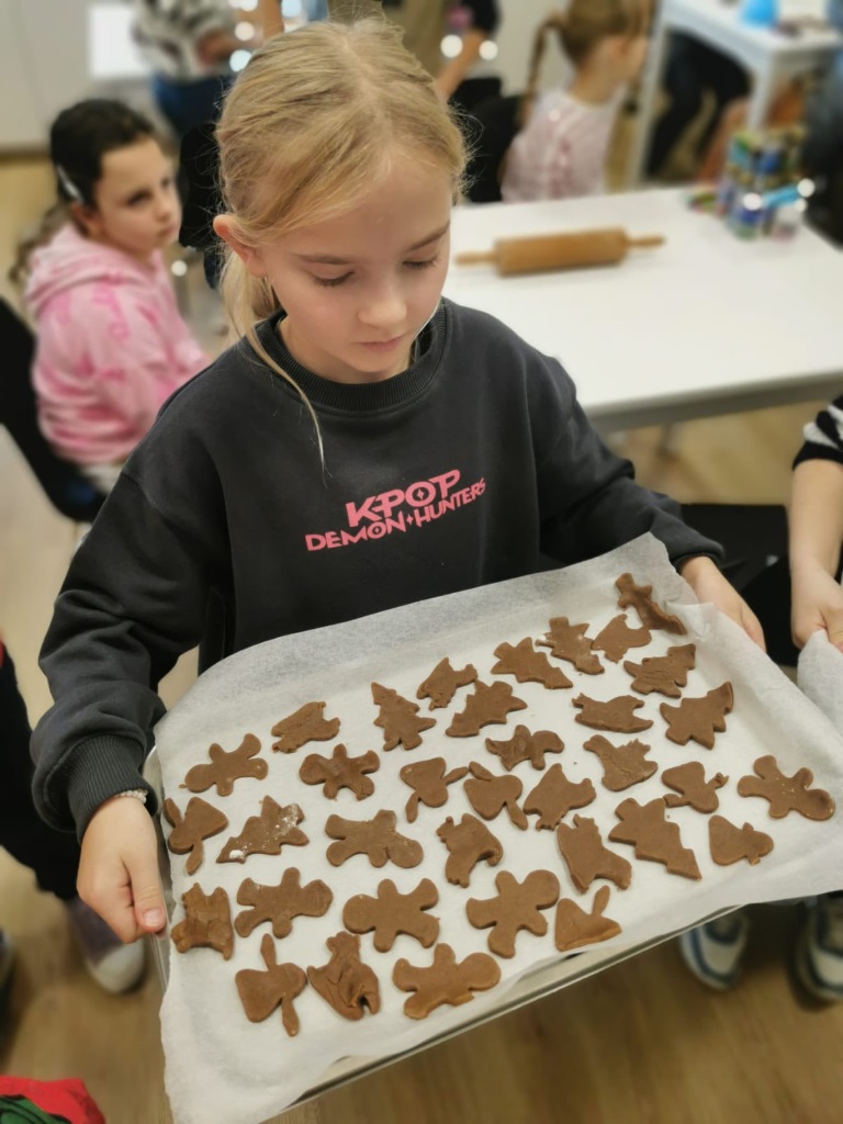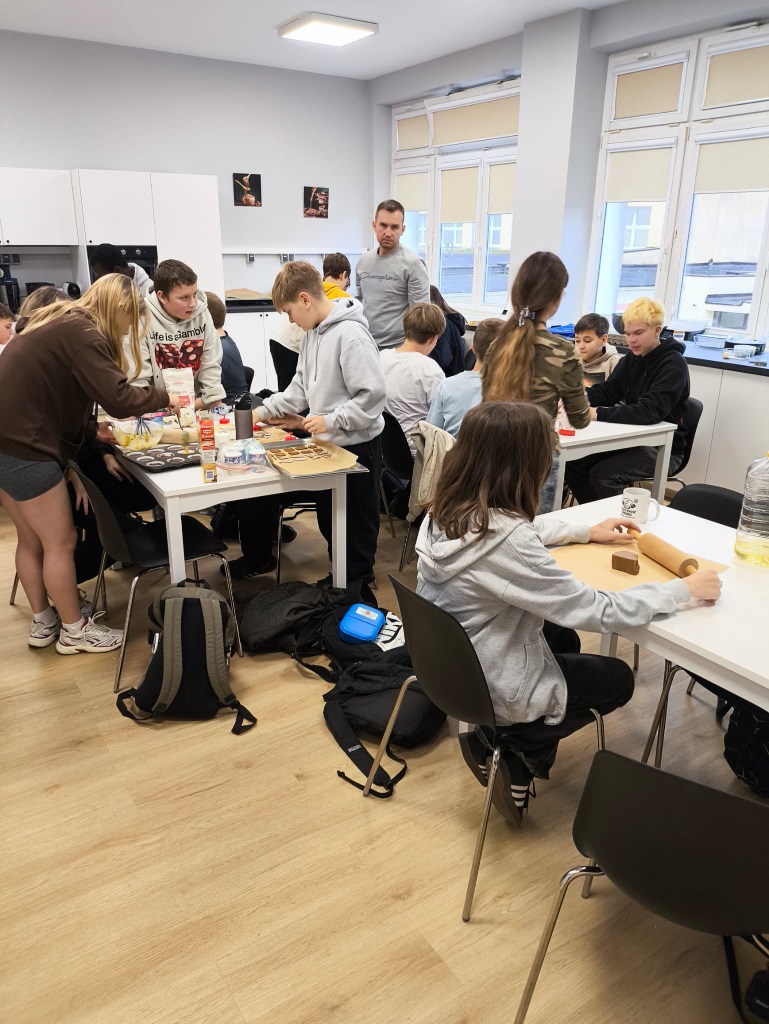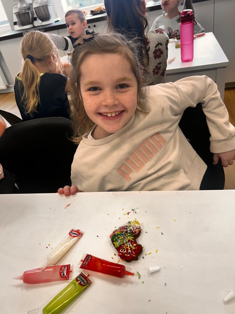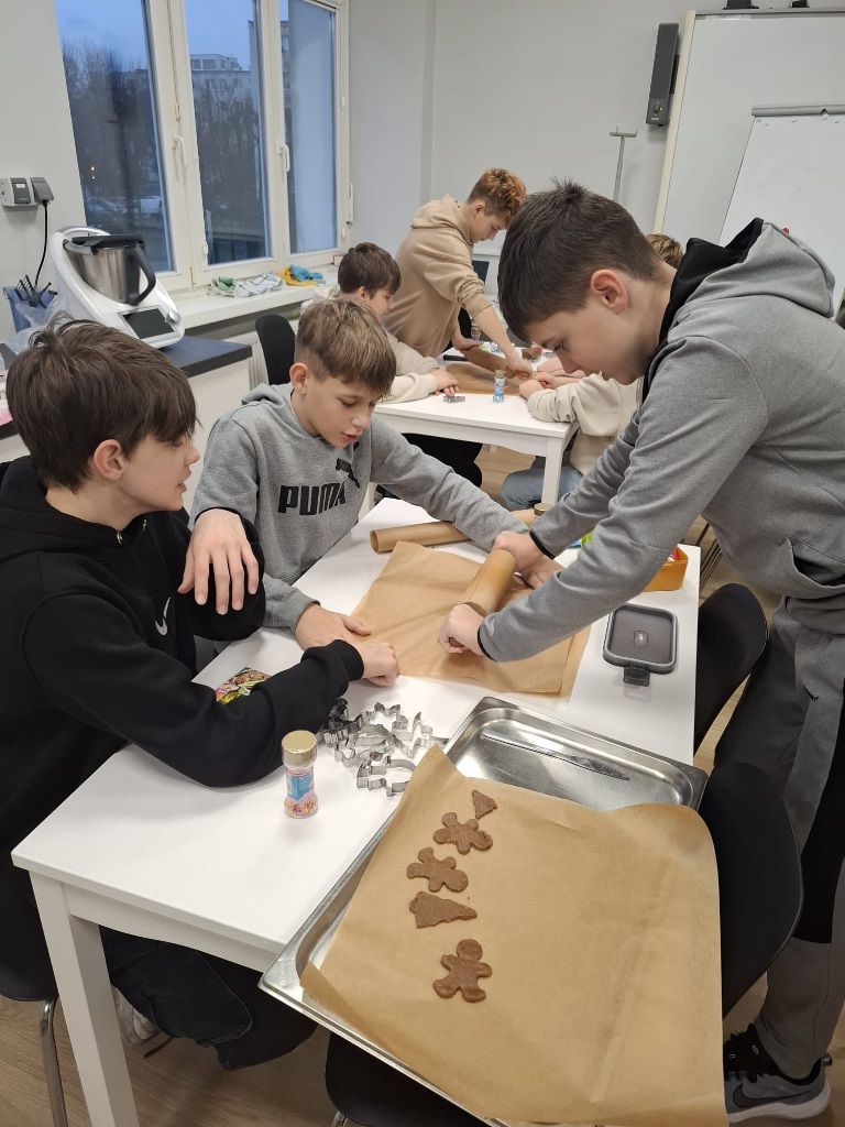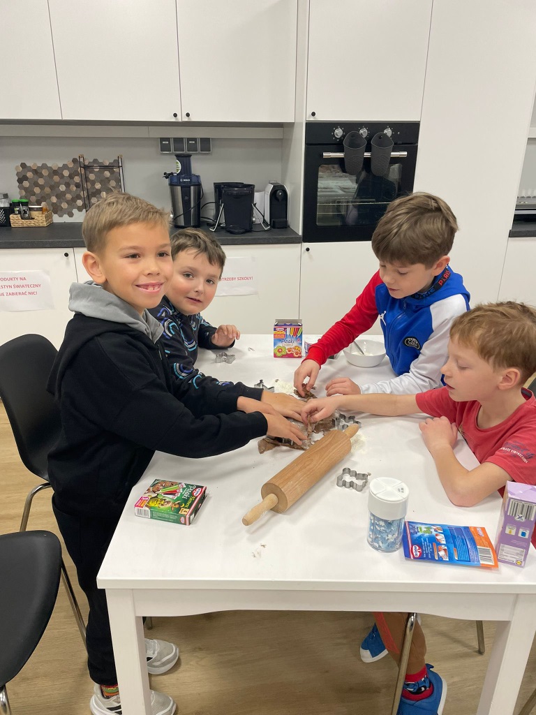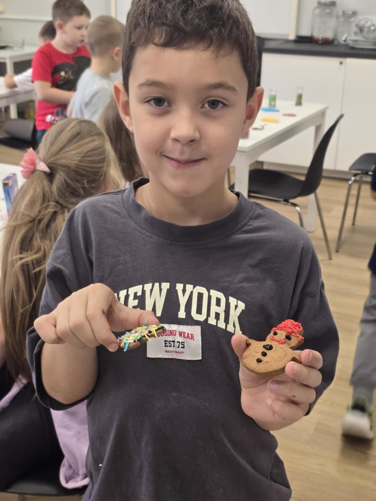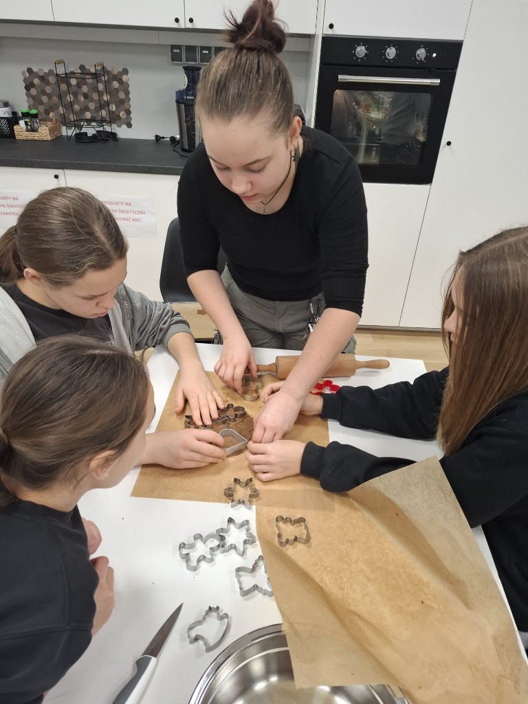Uczniowie klasy 3a z zaangażowaniem piekli i ozdabiali pierniki, przygotowując je na świąteczny kiermasz szkolny. Wspólna praca, zapach korzennych przypraw i kreatywne dekoracje wprowadziły wszystkich w magiczny, przedświąteczny nastrój.