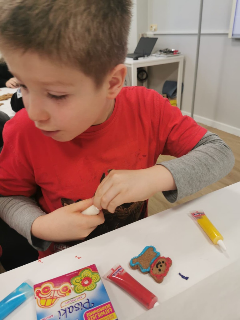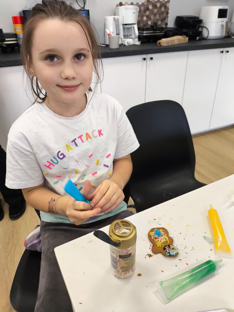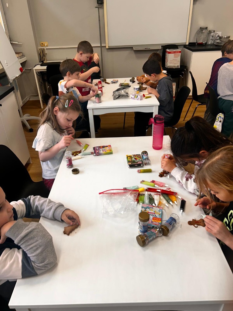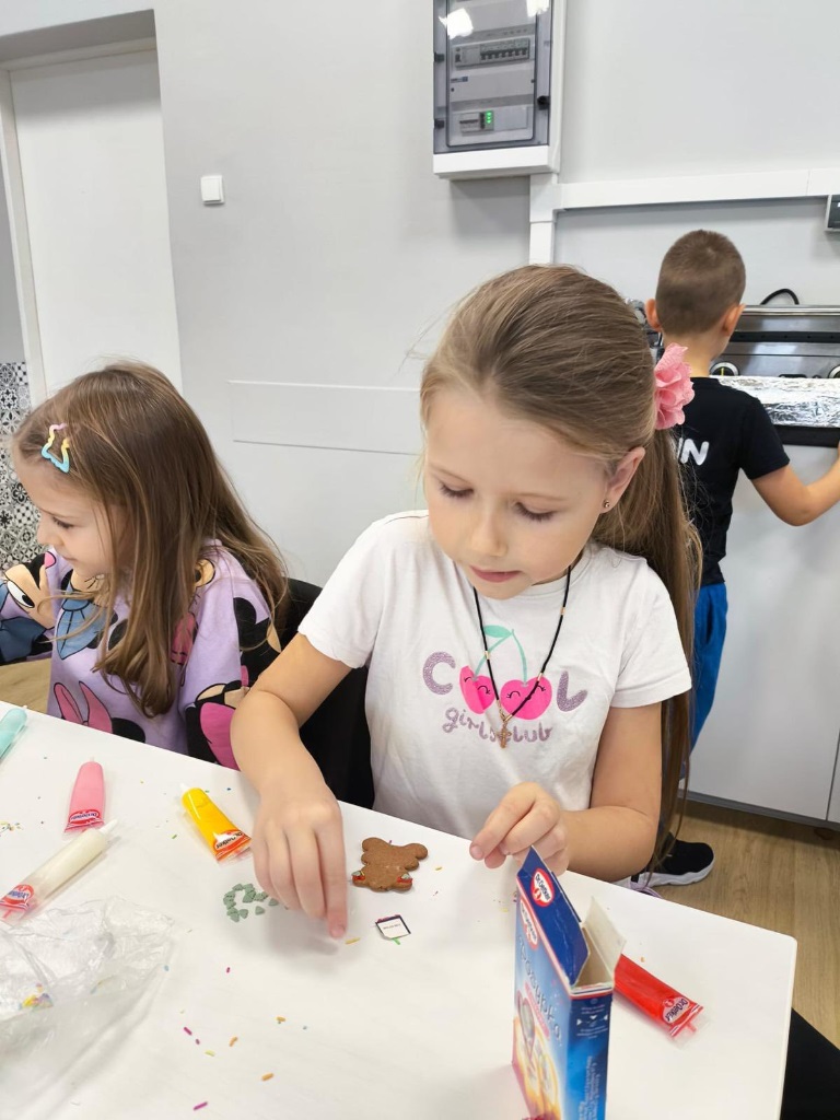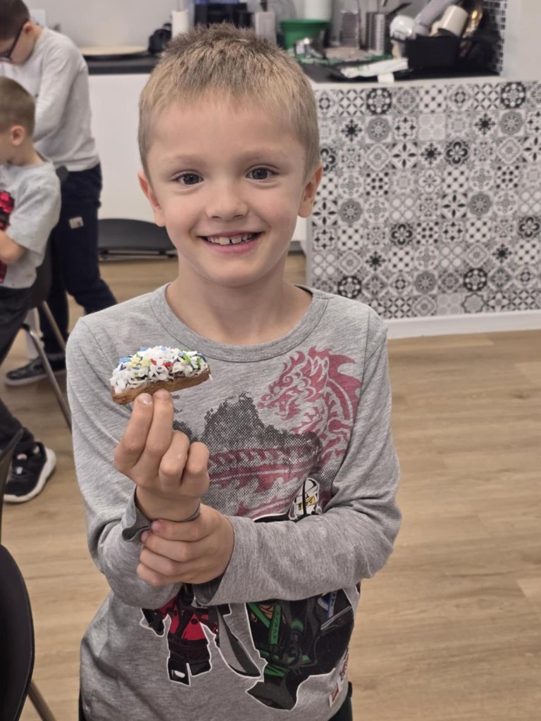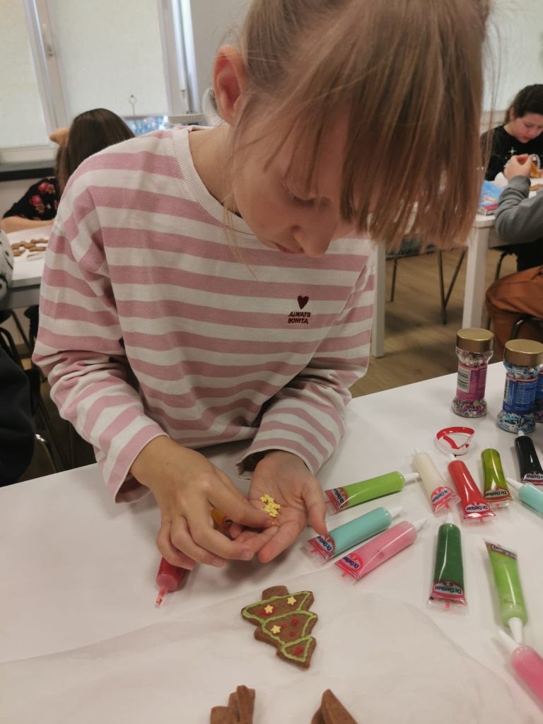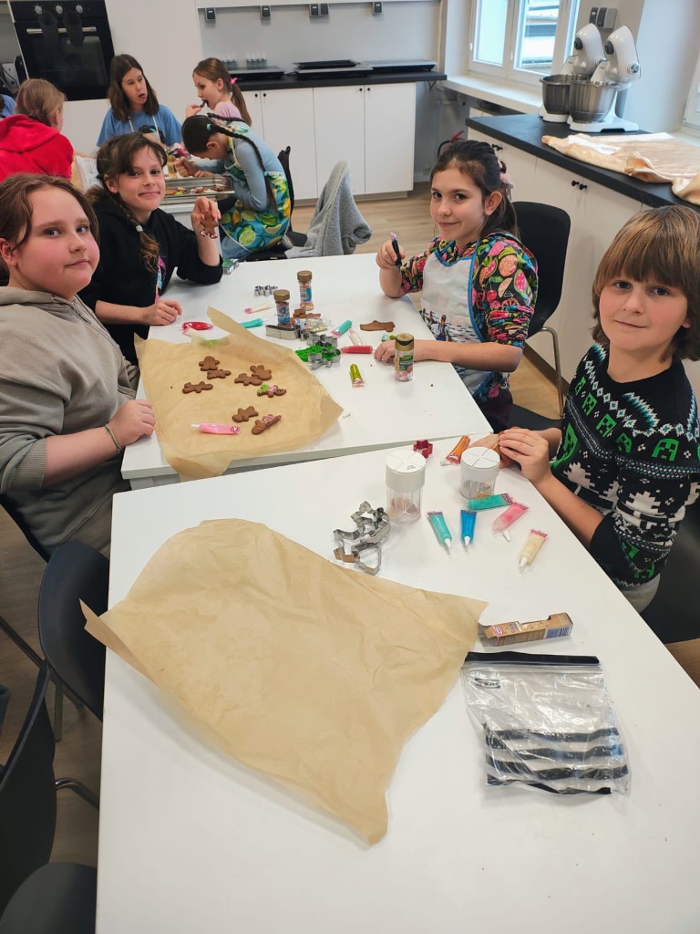 Uczniowie klasy 3a z zaangażowaniem piekli i ozdabiali pierniki, przygotowując je na świąteczny kiermasz szkolny. Wspólna praca, zapach korzennych przypraw i kreatywne dekoracje wprowadziły wszystkich w magiczny, przedświąteczny nastrój.