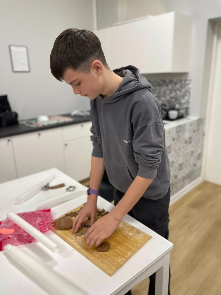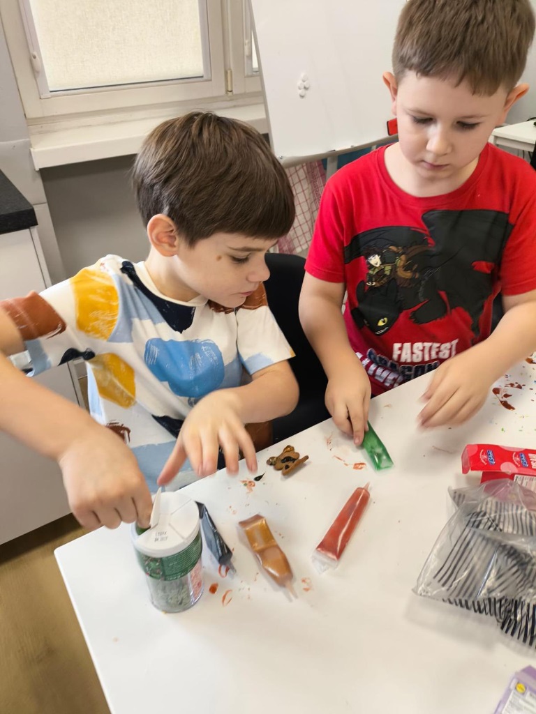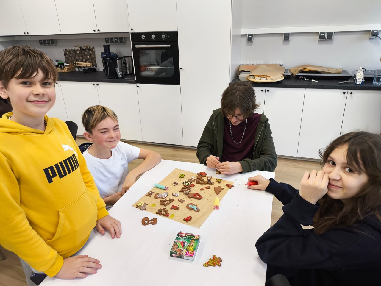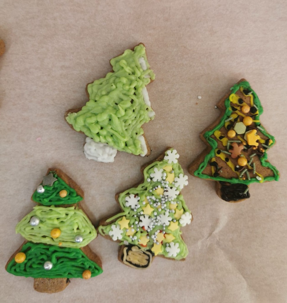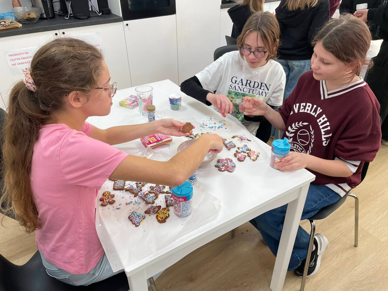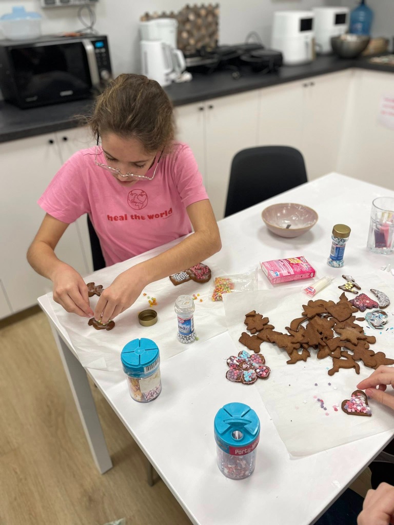 Uczniowie klasy 3a z zaangażowaniem piekli i ozdabiali pierniki, przygotowując je na świąteczny kiermasz szkolny. Wspólna praca, zapach korzennych przypraw i kreatywne dekoracje wprowadziły wszystkich w magiczny, przedświąteczny nastrój.