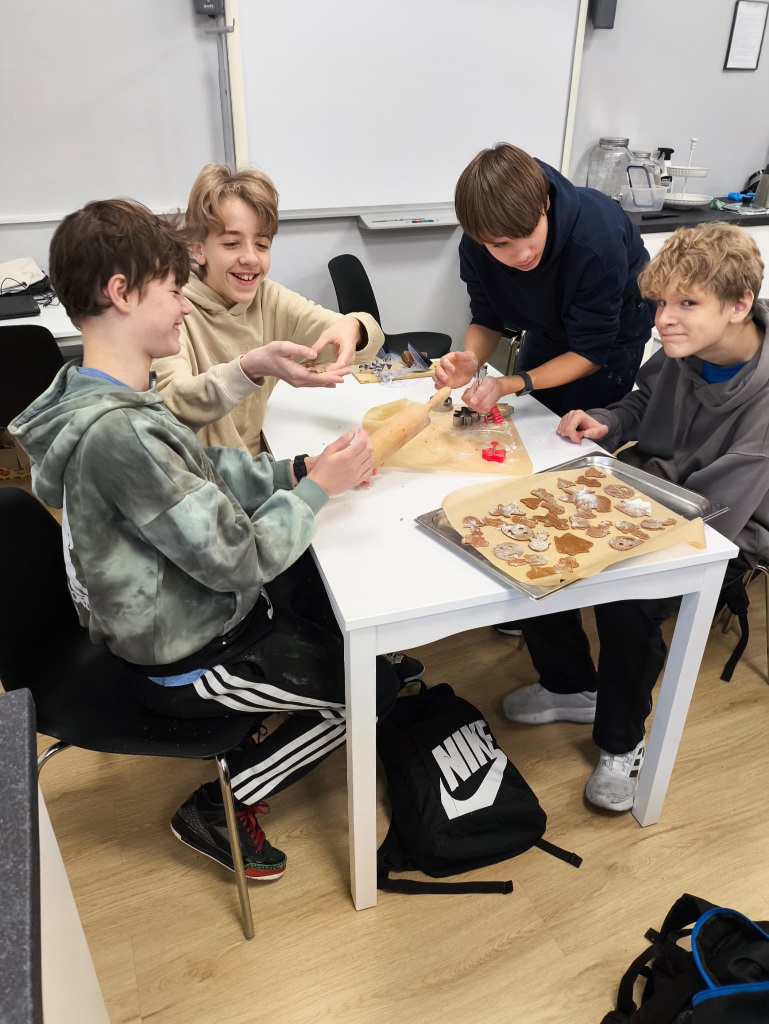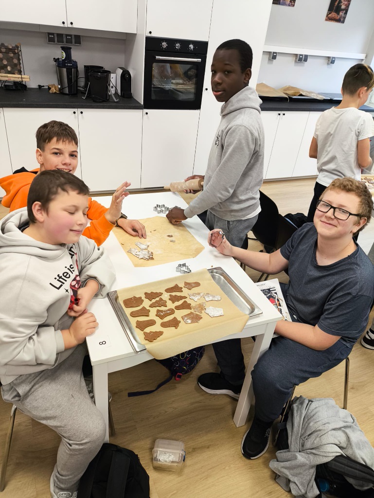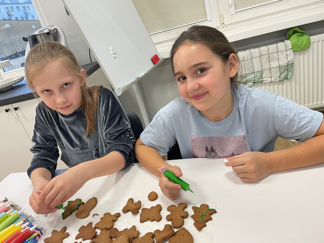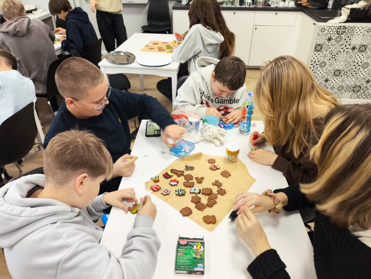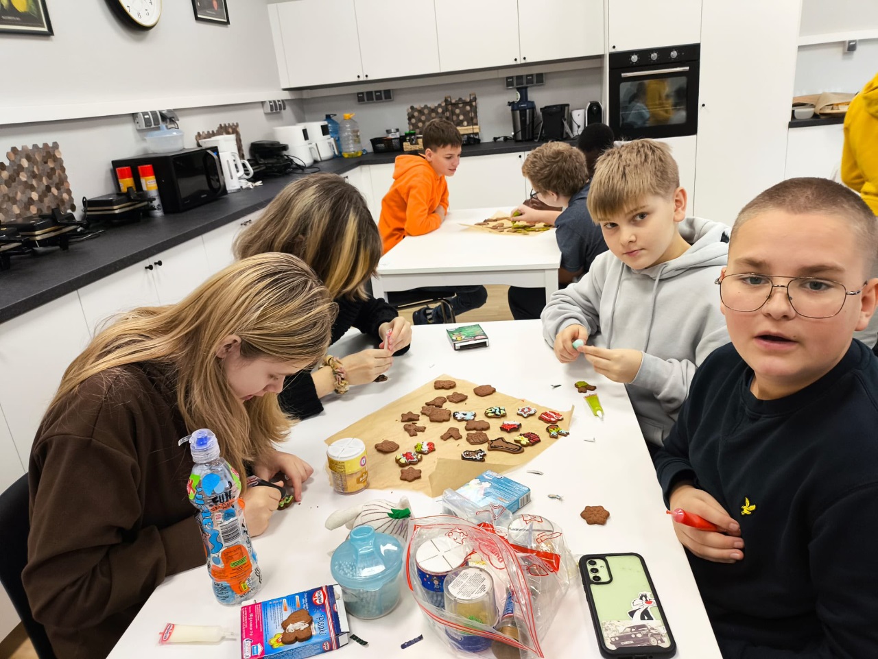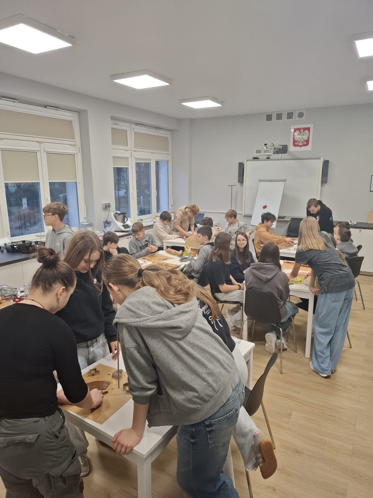 Uczniowie klasy 3a z zaangażowaniem piekli i ozdabiali pierniki, przygotowując je na świąteczny kiermasz szkolny. Wspólna praca, zapach korzennych przypraw i kreatywne dekoracje wprowadziły wszystkich w magiczny, przedświąteczny nastrój.