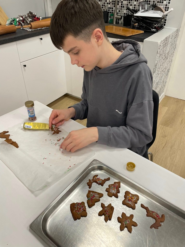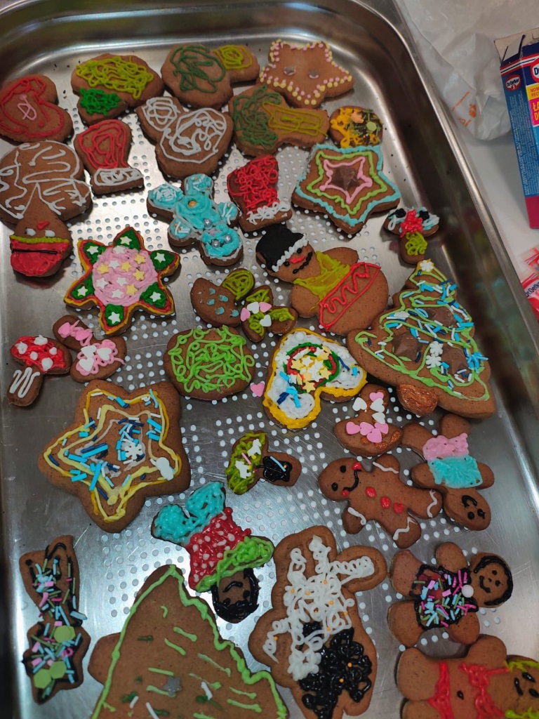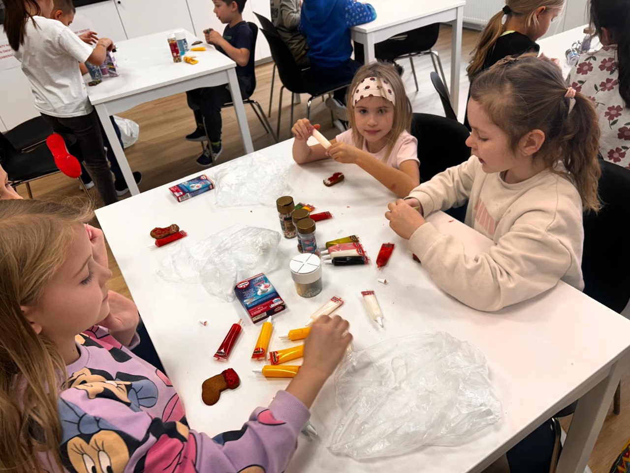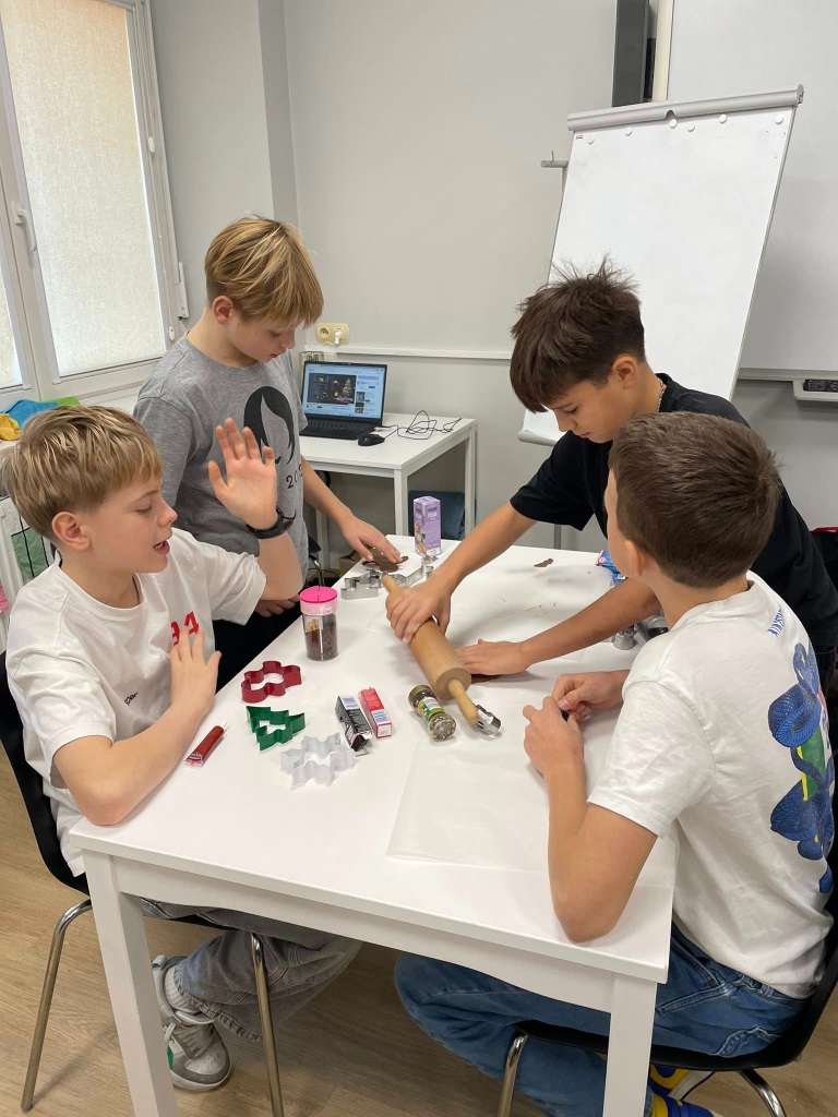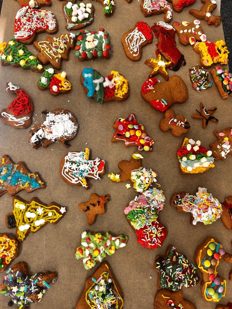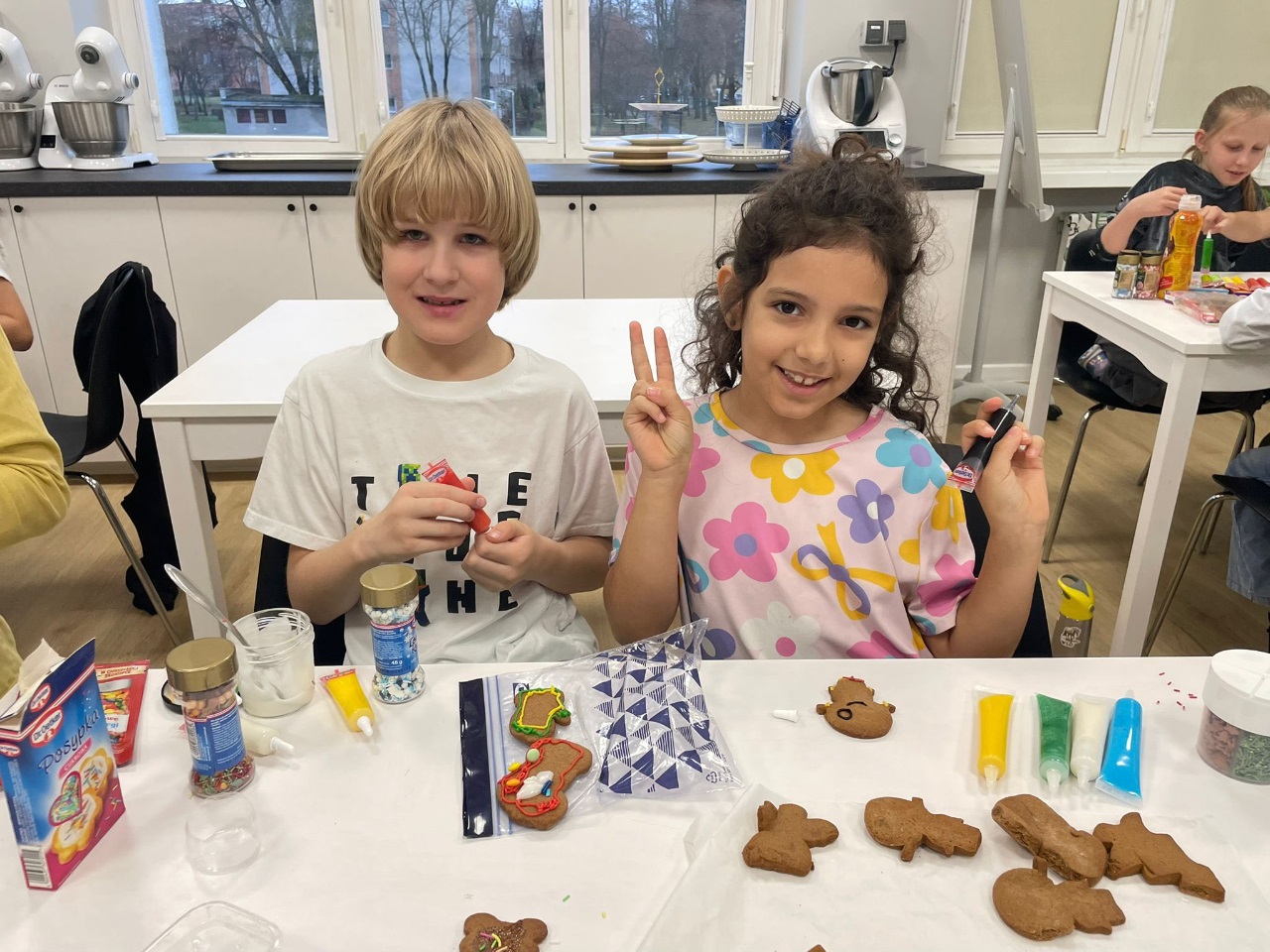 Uczniowie klasy 3a z zaangażowaniem piekli i ozdabiali pierniki, przygotowując je na świąteczny kiermasz szkolny. Wspólna praca, zapach korzennych przypraw i kreatywne dekoracje wprowadziły wszystkich w magiczny, przedświąteczny nastrój.