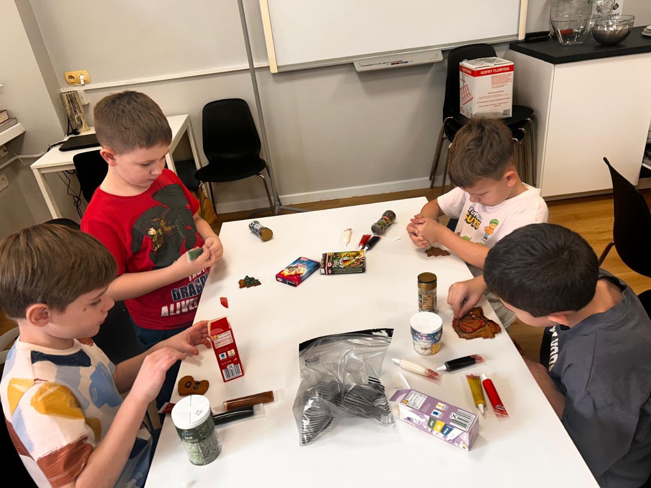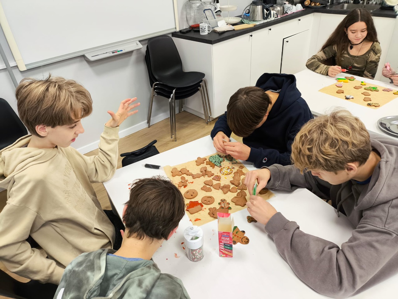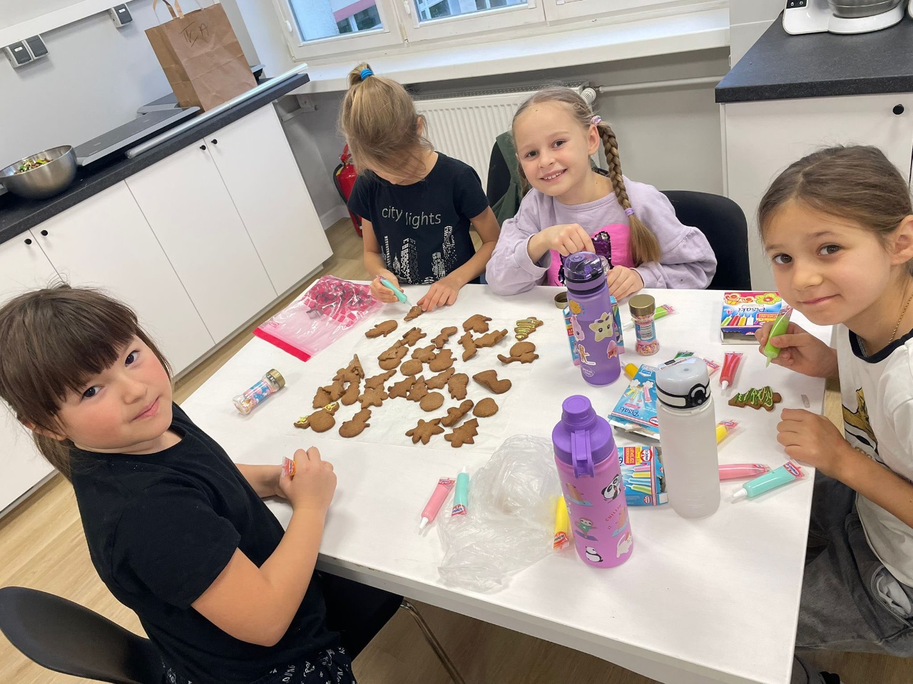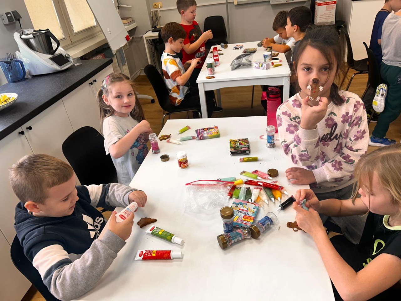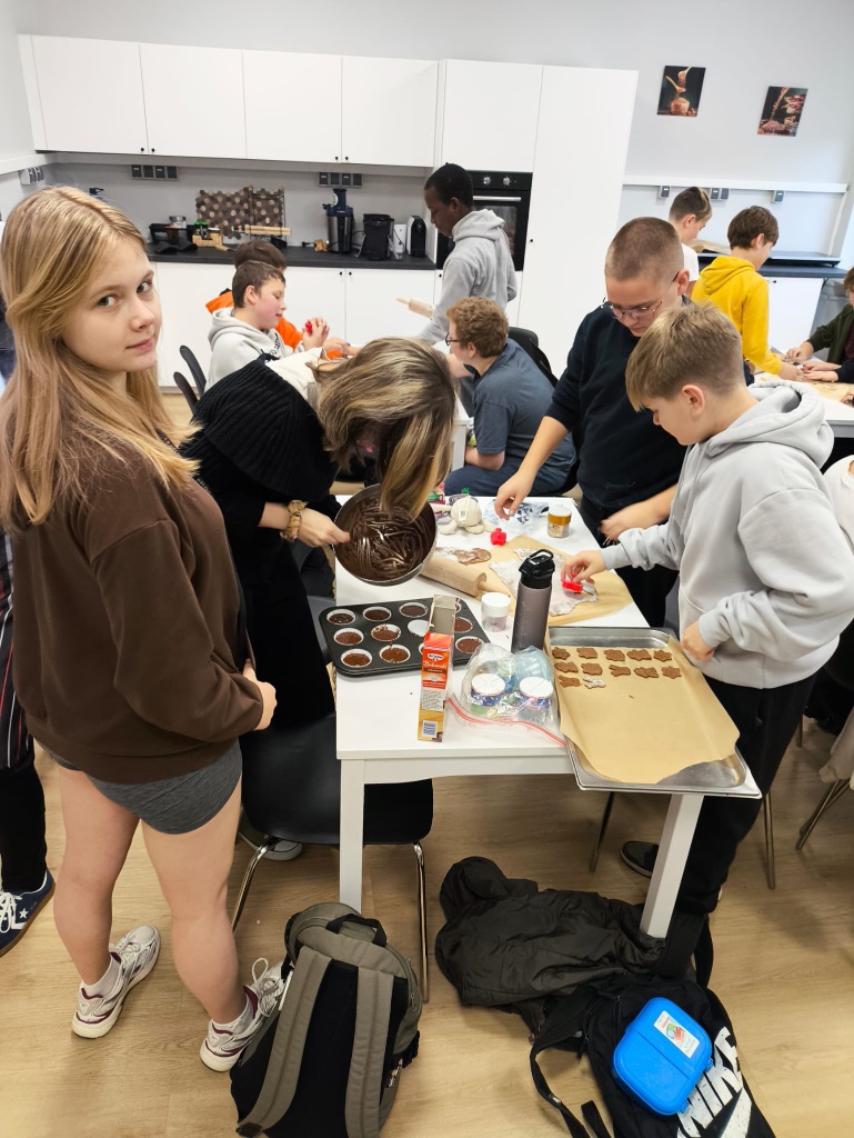 Uczniowie klasy 3a z zaangażowaniem piekli i ozdabiali pierniki, przygotowując je na świąteczny kiermasz szkolny. Wspólna praca, zapach korzennych przypraw i kreatywne dekoracje wprowadziły wszystkich w magiczny, przedświąteczny nastrój.