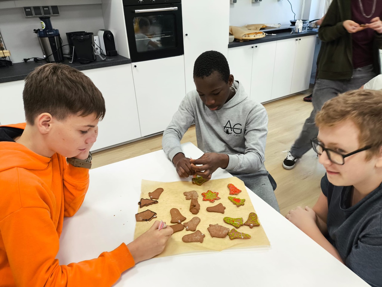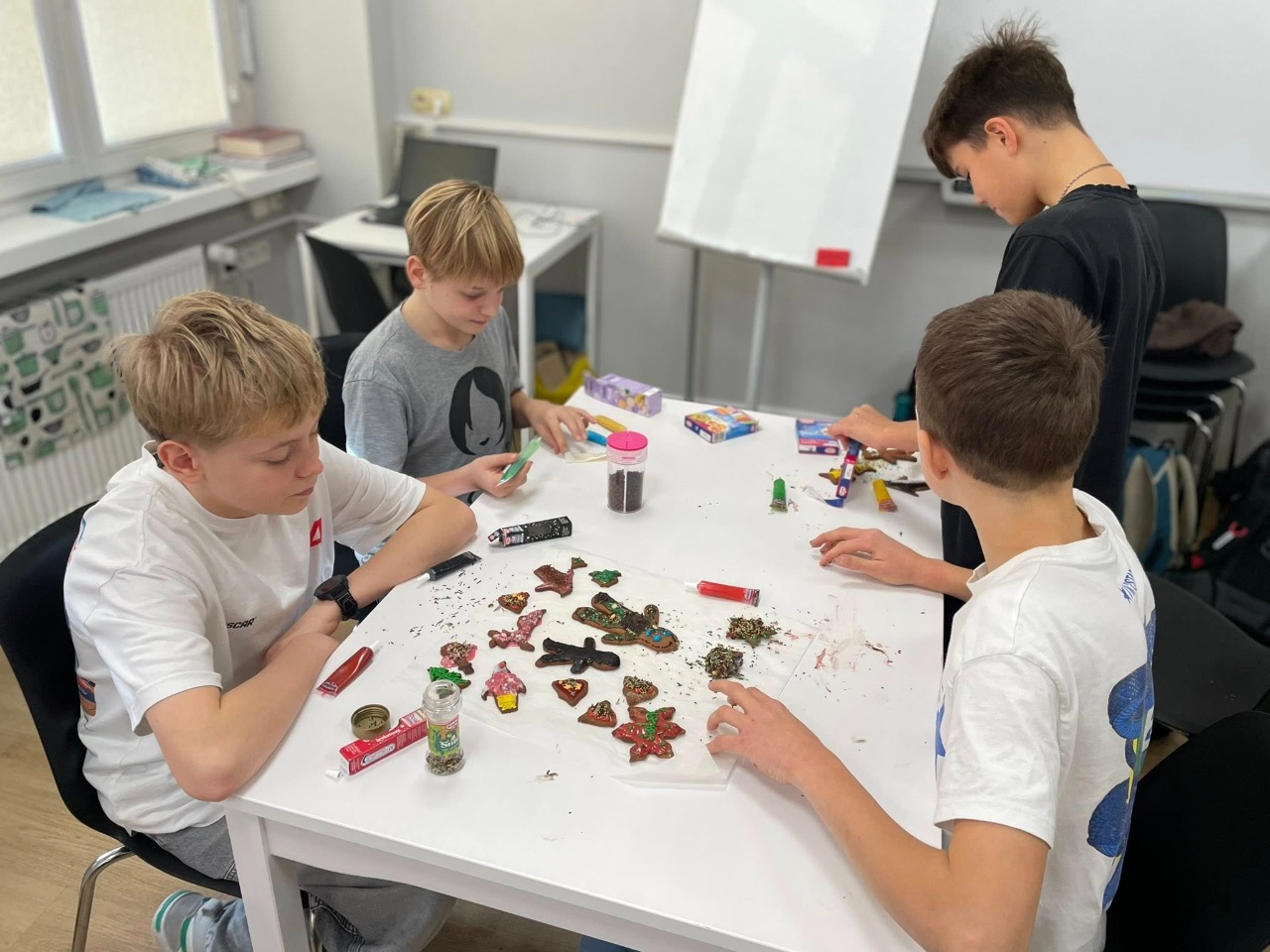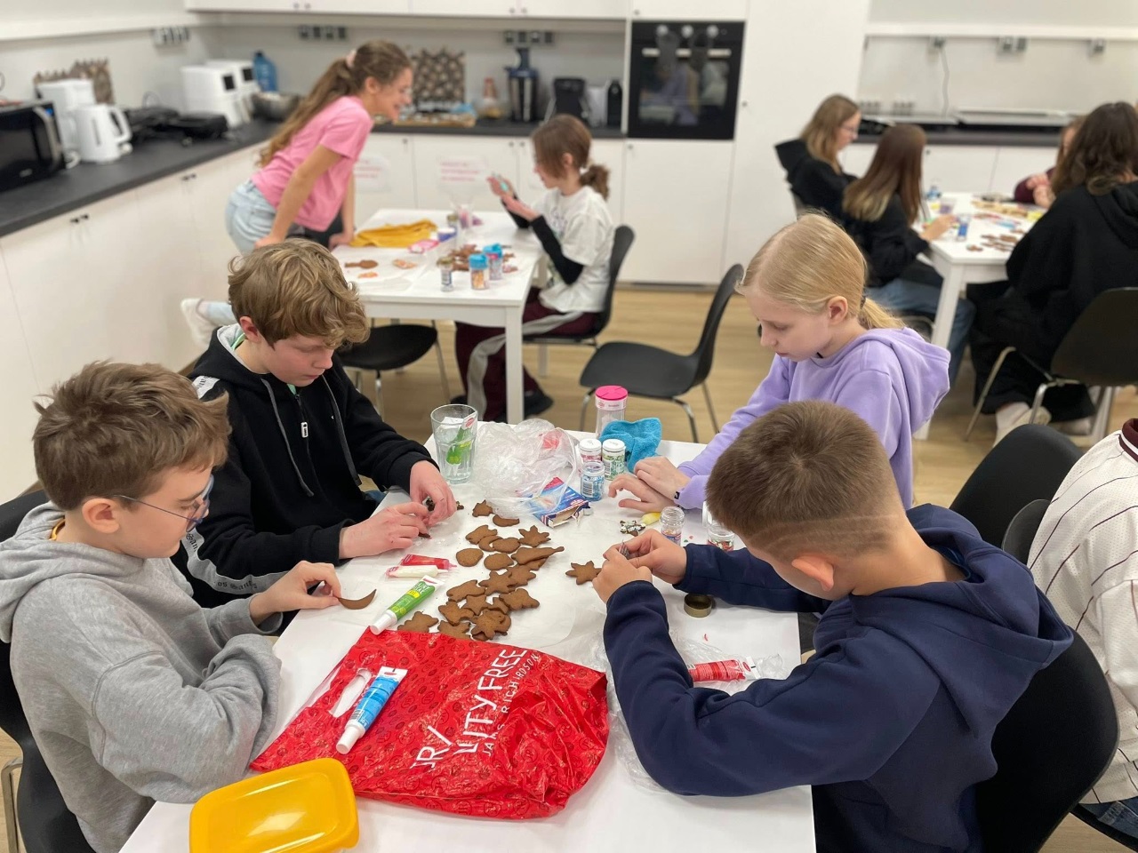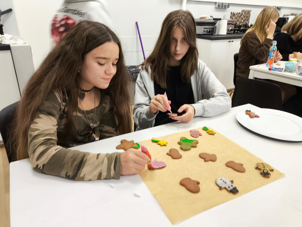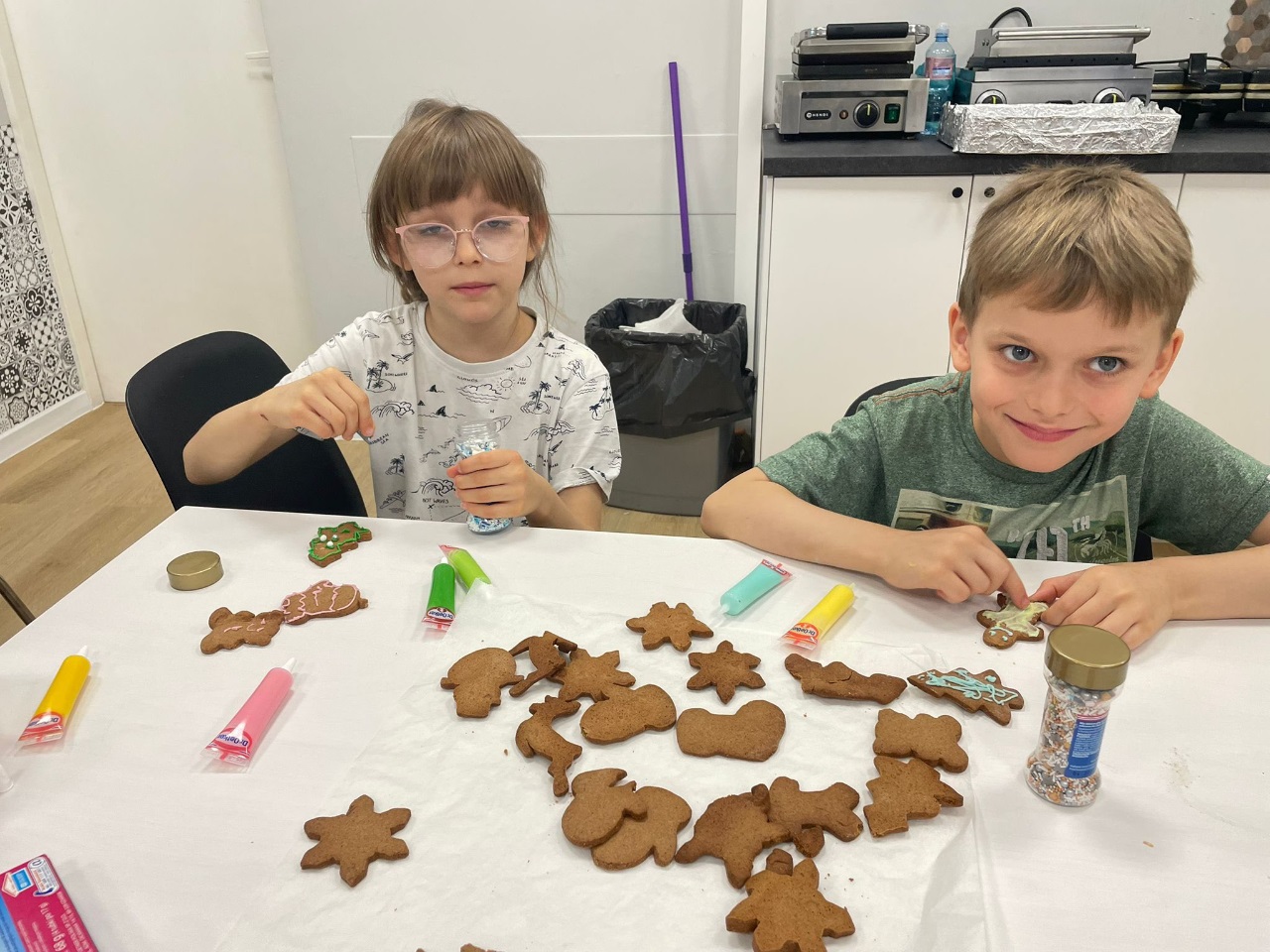 Uczniowie klasy 3a z zaangażowaniem piekli i ozdabiali pierniki, przygotowując je na świąteczny kiermasz szkolny. Wspólna praca, zapach korzennych przypraw i kreatywne dekoracje wprowadziły wszystkich w magiczny, przedświąteczny nastrój.