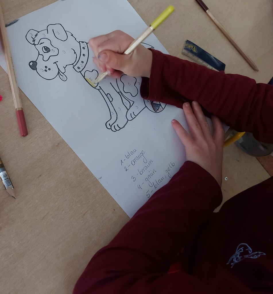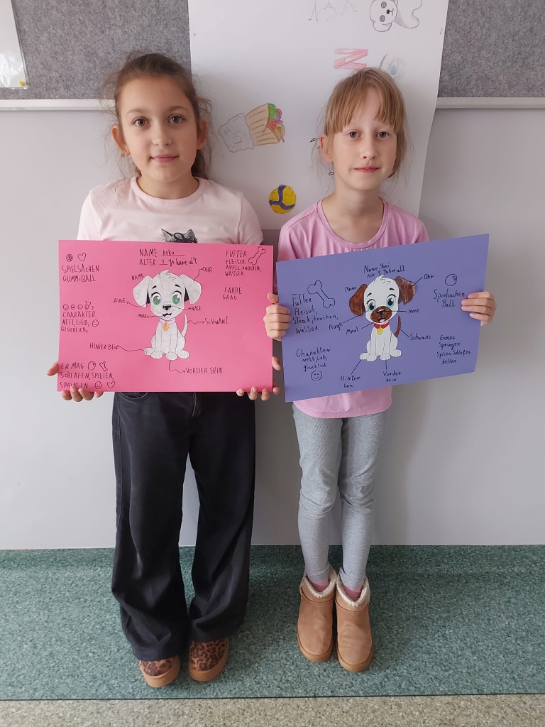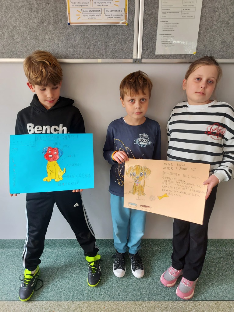 Pieski Kundelki w piosenkach, wierszykach i rysunkach zagościły na języku niemieckim w klasach pierwszych. "Tag des Hundes"w wersji rozszerzonej towarzyszył także dzieciom na dodatkowych zajęciach j.niemieckiego mniejszości narodowej.