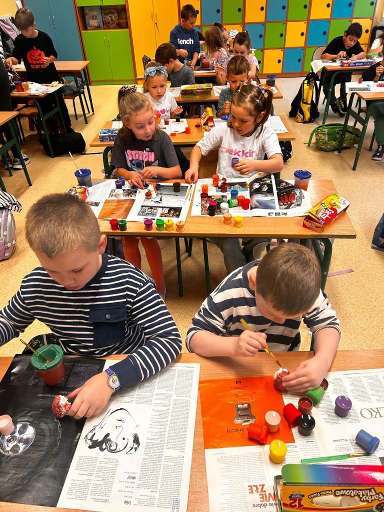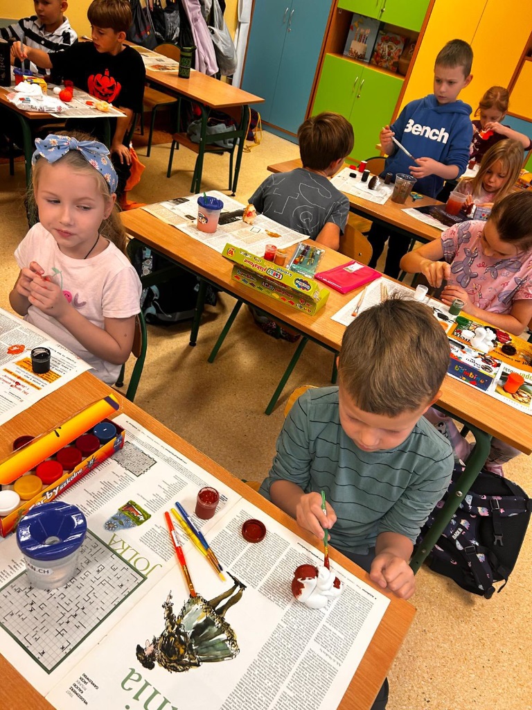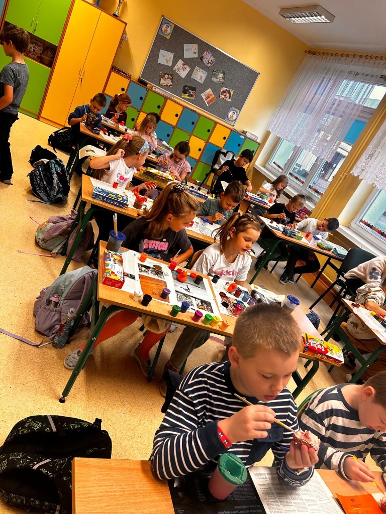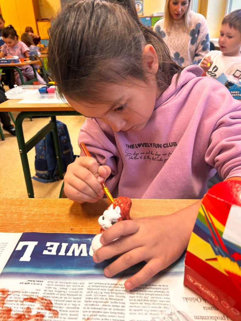 Uczniowie klasy 1a wspaniale bawili się dziś, malując gipsowe figurki!