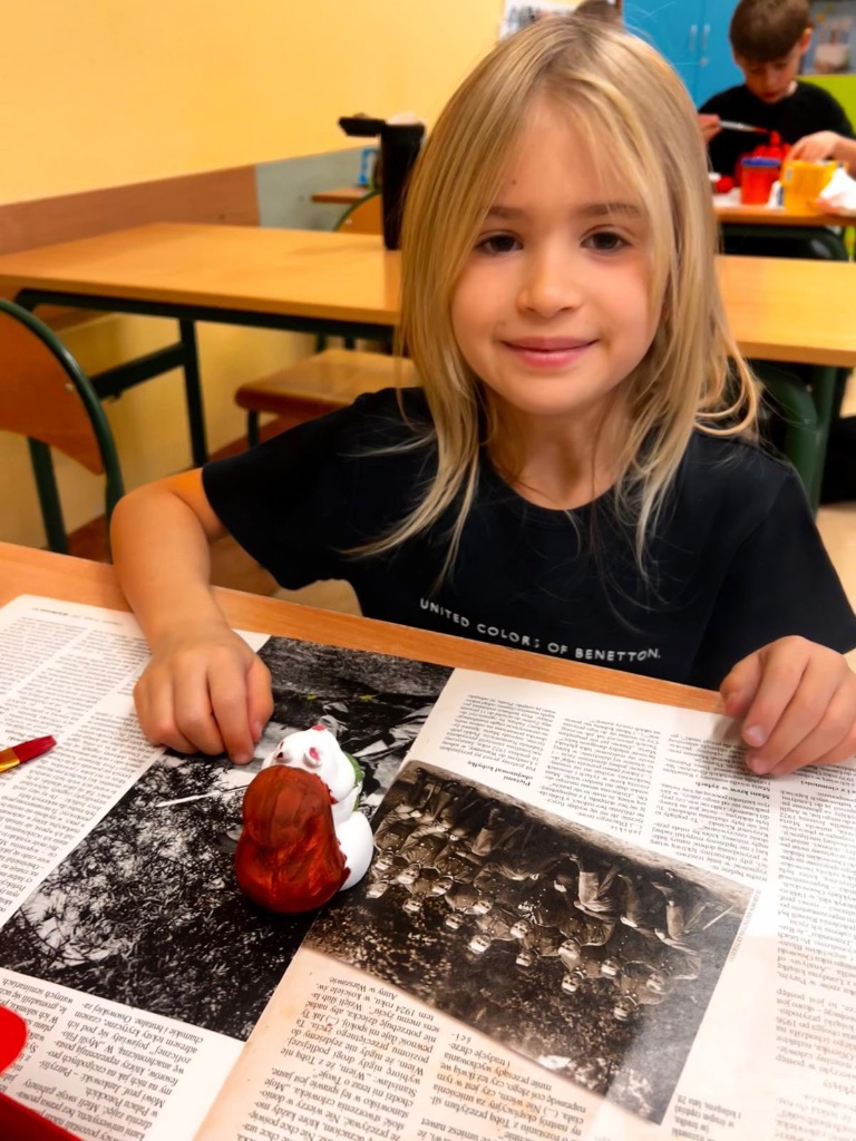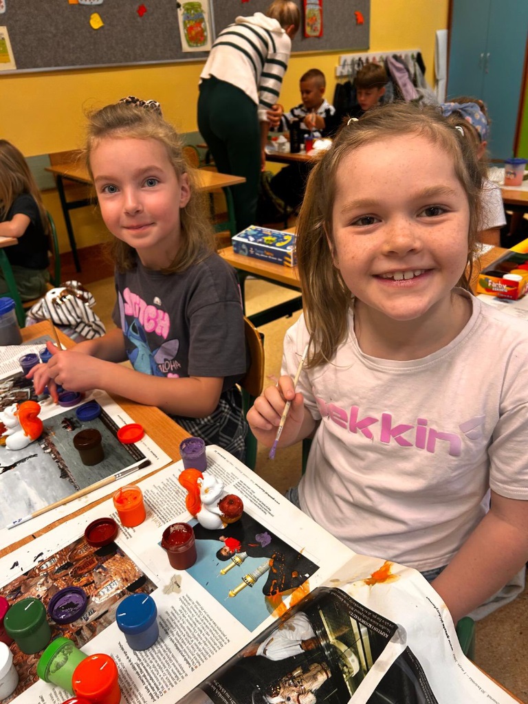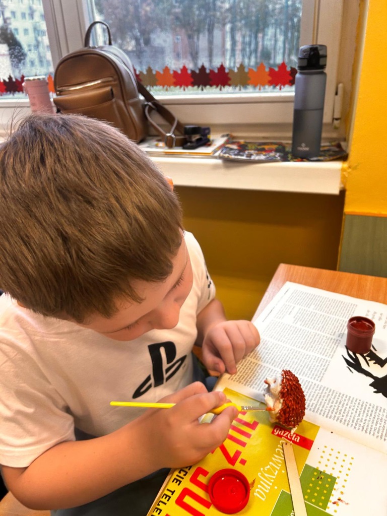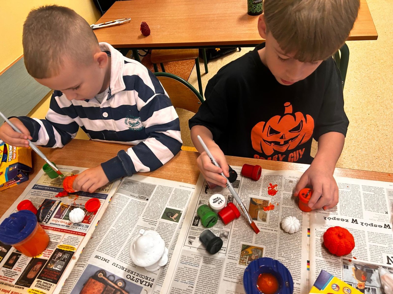 Uczniowie klasy 1a wspaniale bawili się dziś, malując gipsowe figurki!