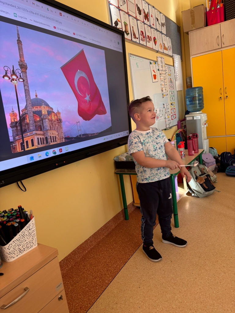 Dzieci poznały ciekawe fakty o tym kraju - najwyższy szczyt, najstarsze drzewo, kamienista plaża i wiele innych. Dziękujemy za to inspirujące wystąpienie