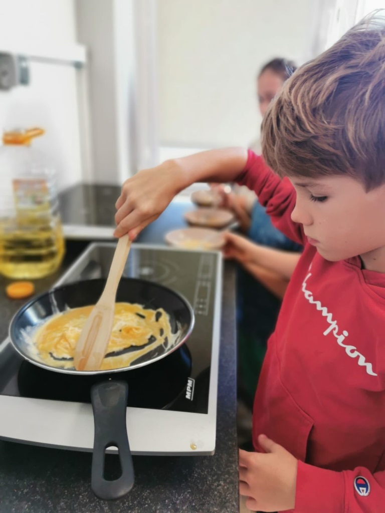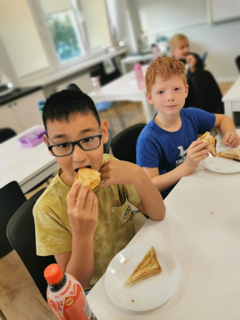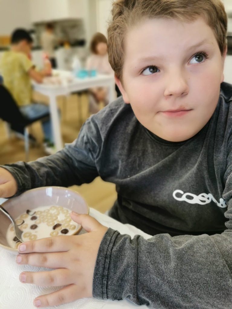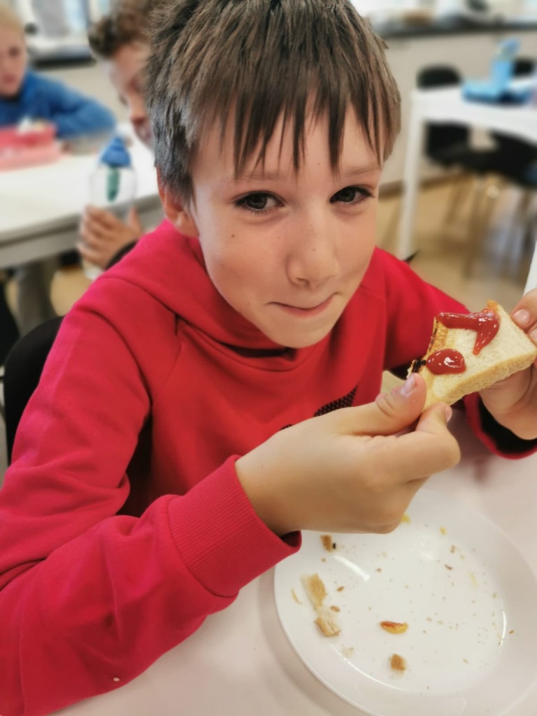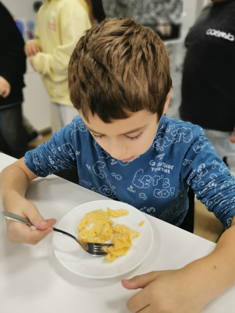 Uczniowie klasy 3a samodzielnie przygotowali pyszne śniadanie – smażyli jajecznicę, robili chrupiące tosty i podgrzewali mleko do płatków.