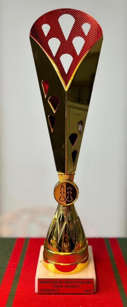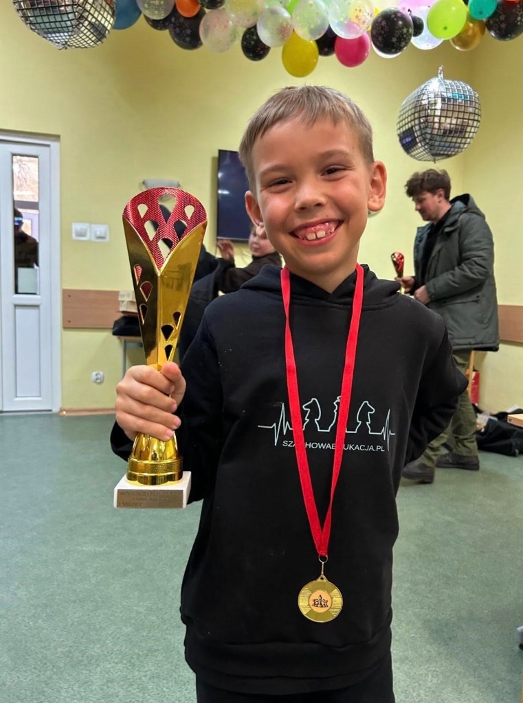 Z ogromną przyjemnością informujemy, że 24 stycznia uczeń klasy 2B Franciszek Stefaniak, wygrał turniej szachowy Satus Annus – Świnoujście Chess Tour 2026 w grupie dla zawodników V kategorii Polskiego Związku Szachowego. Franek wygrał pięć z sześciu partii i oprócz pucharu za zdobycie pierwszego miejsca uzyskał także wynik dający mu IV kategorię Polskiego Związku Szachowego.