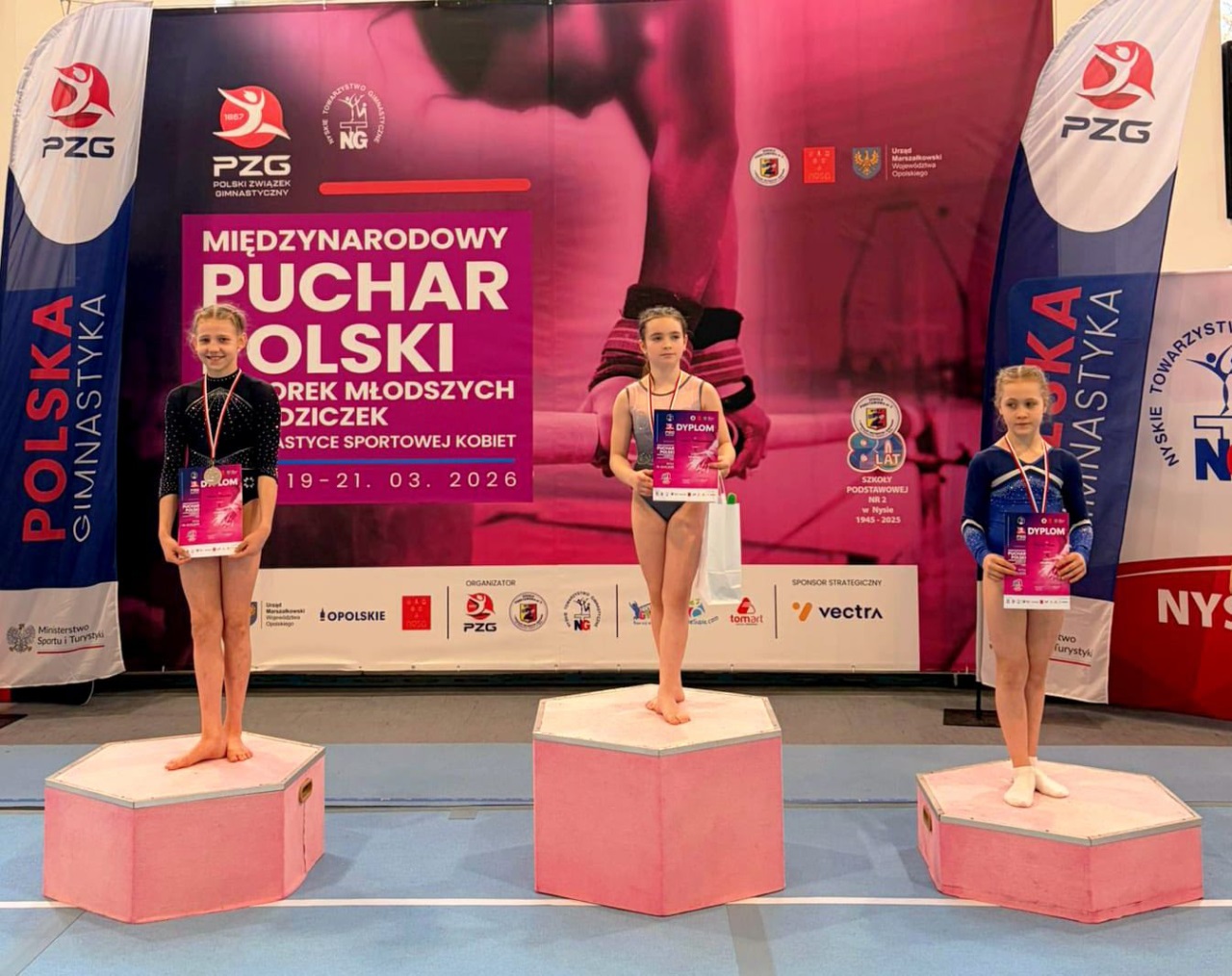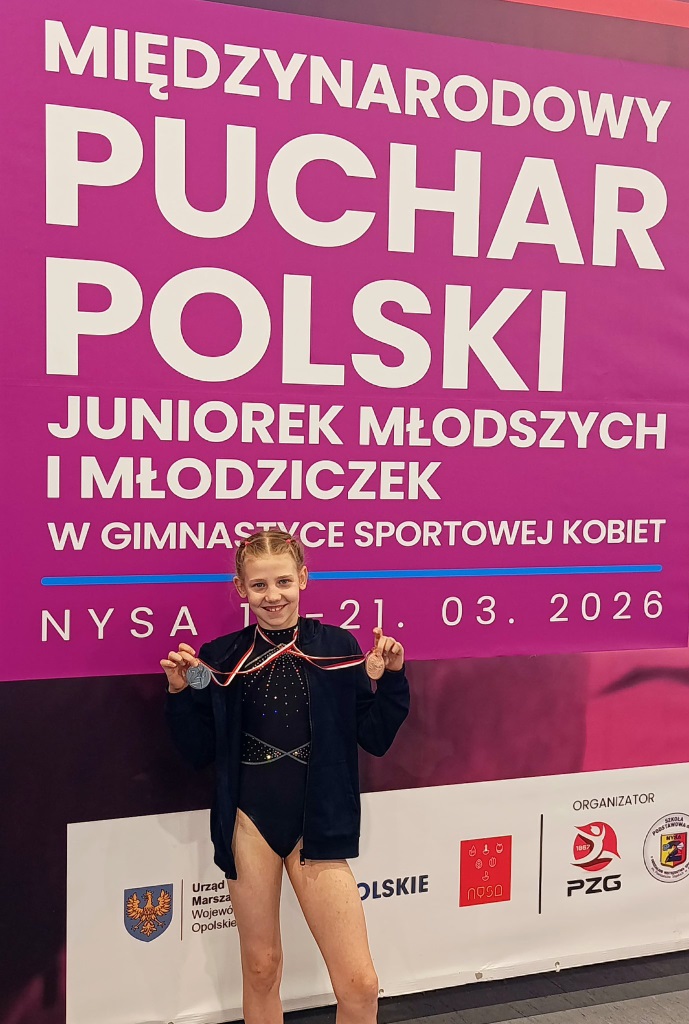 Mamy zaszczyt ogłosić, że Natalka Stasiołek z klasy 4b podczas Międzynarodowego Pucharu Polski Juniorek Młodszych i Młodziczek w gimnastyce sportowej kobiet (Nysa 19-21.03.26) zdobyła: