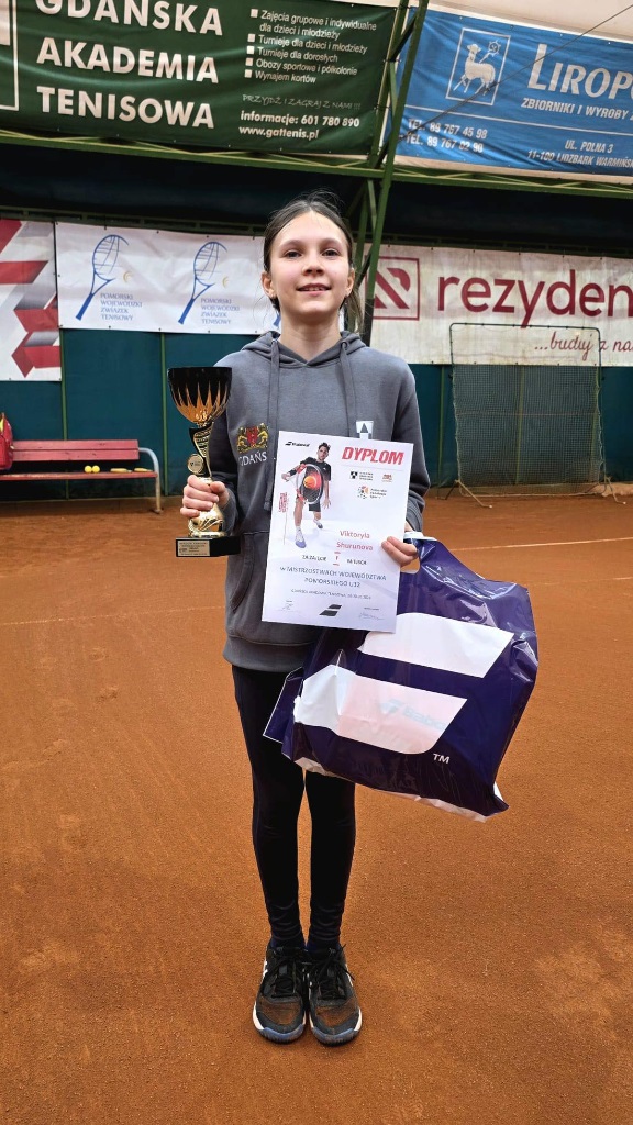 Sukcesy uczennicy klasy 5b Viktoryi Shurunovej - wczoraj Viktoryia zajęła I miejsce w Mistrzostwach Województwa Pomorskiego w tenisie ziemnym. Gratulujemy!