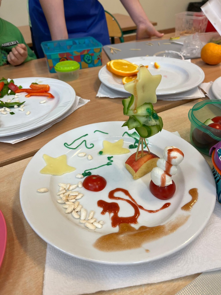 Dziś na zajęciach kulinarnych klasa 1b z owoców, warzyw i przypraw komponowała świąteczne choinki i dekoracje świąteczne. Kreatywność i twórczość kulinarna w klasie 1b nie miała dziś żadnych granic.![]()