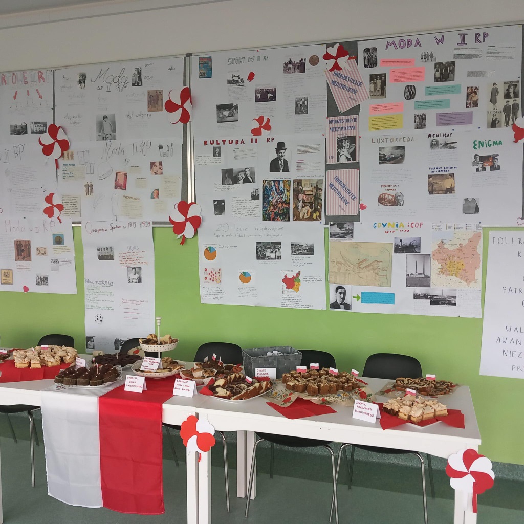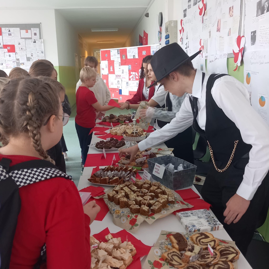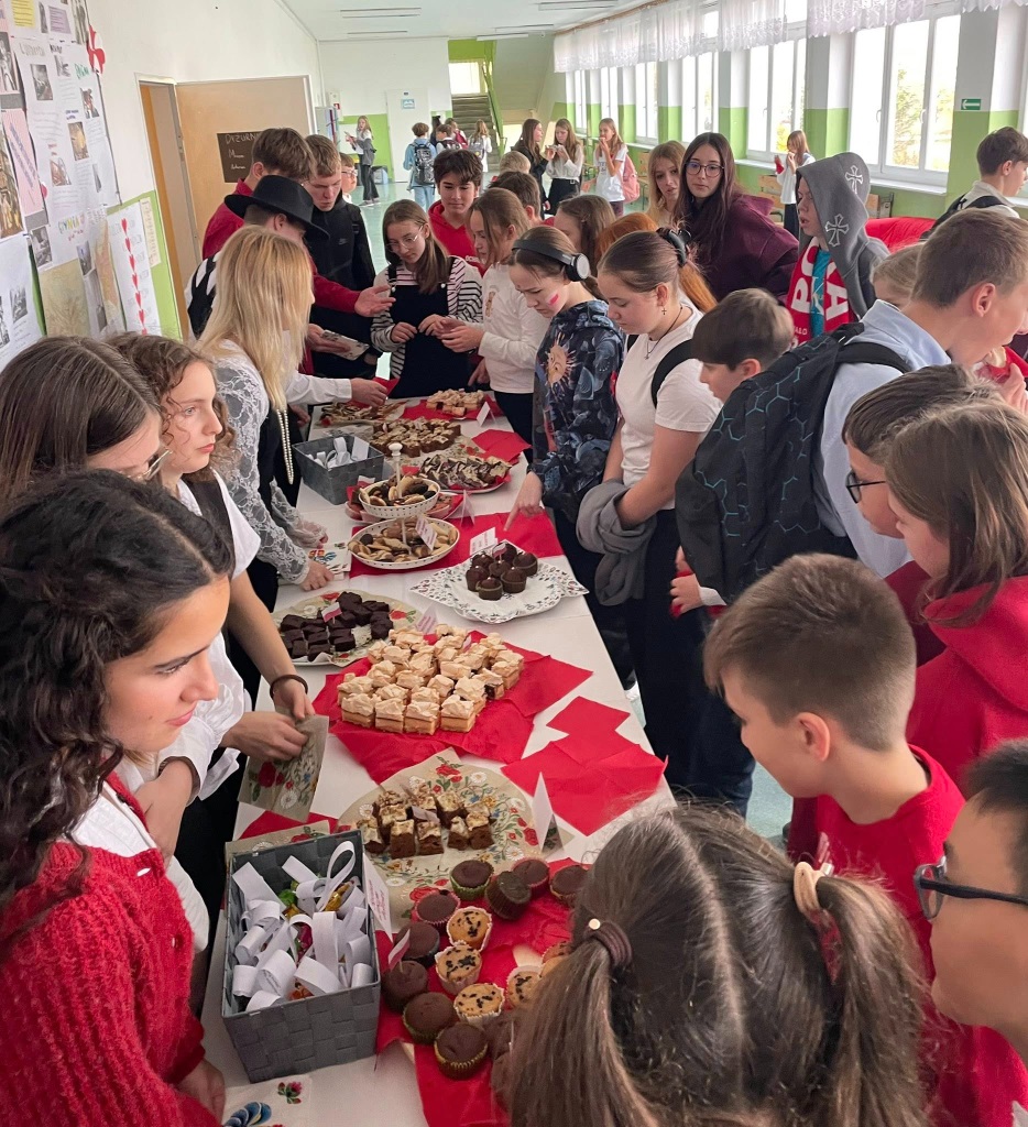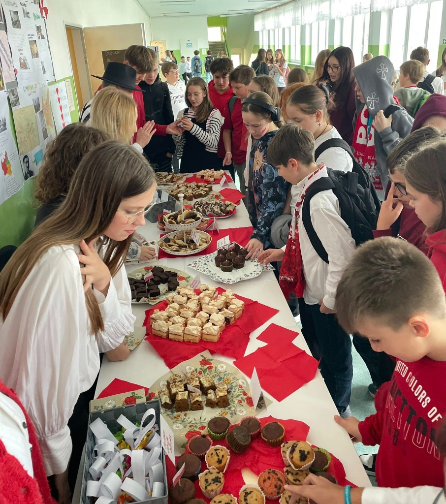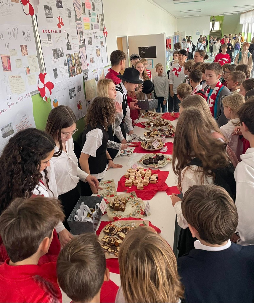 W piątek wspólnie, z dumą, odśpiewaliśmy hymn narodowy. Uczniowie przygotowali wspaniałe dekoracje, plakaty i piękne stroje. Nie zabrakło też kawiarenki patriotycznej, gdzie można było skosztować słodkości i dowiedzieć się czegoś o historii Polski.