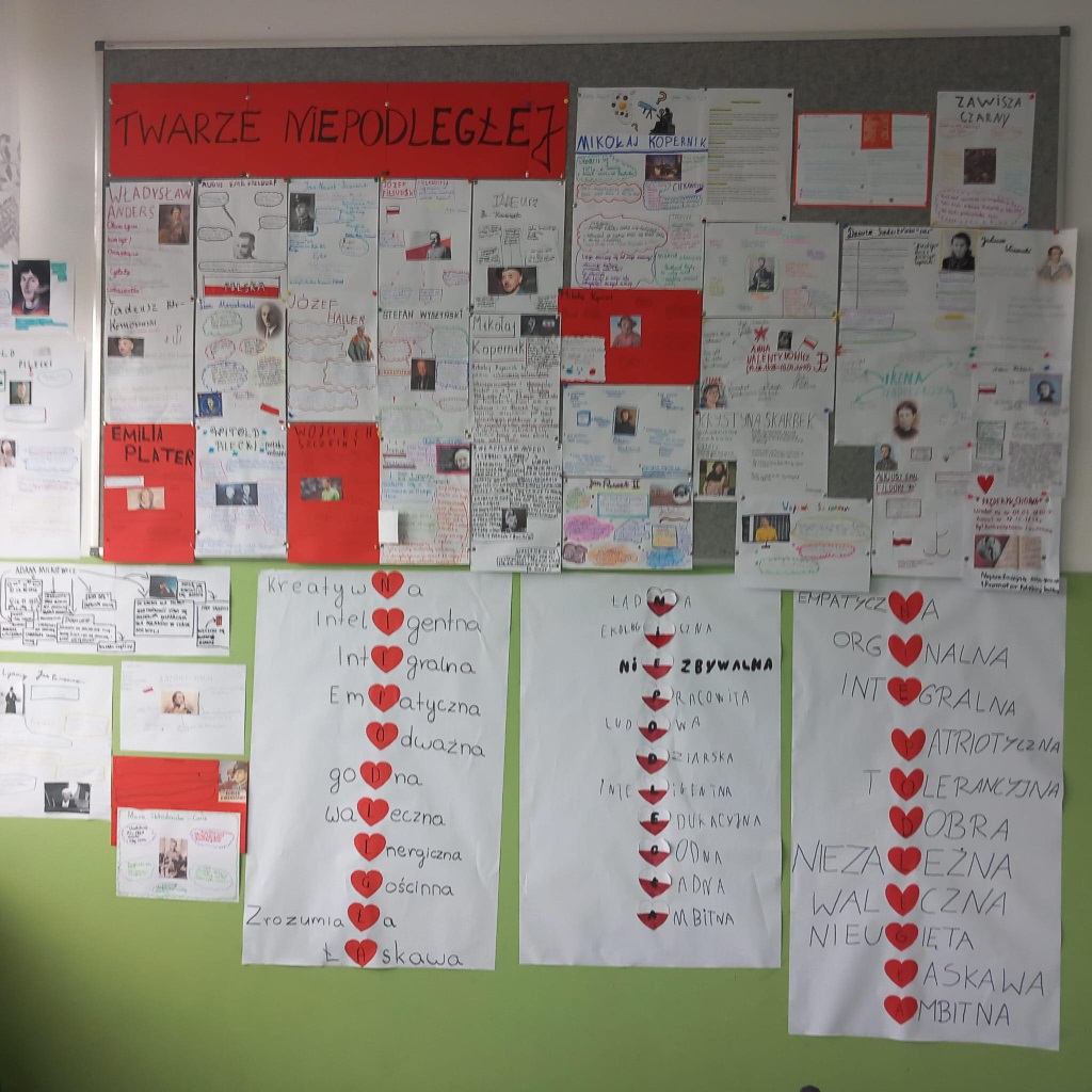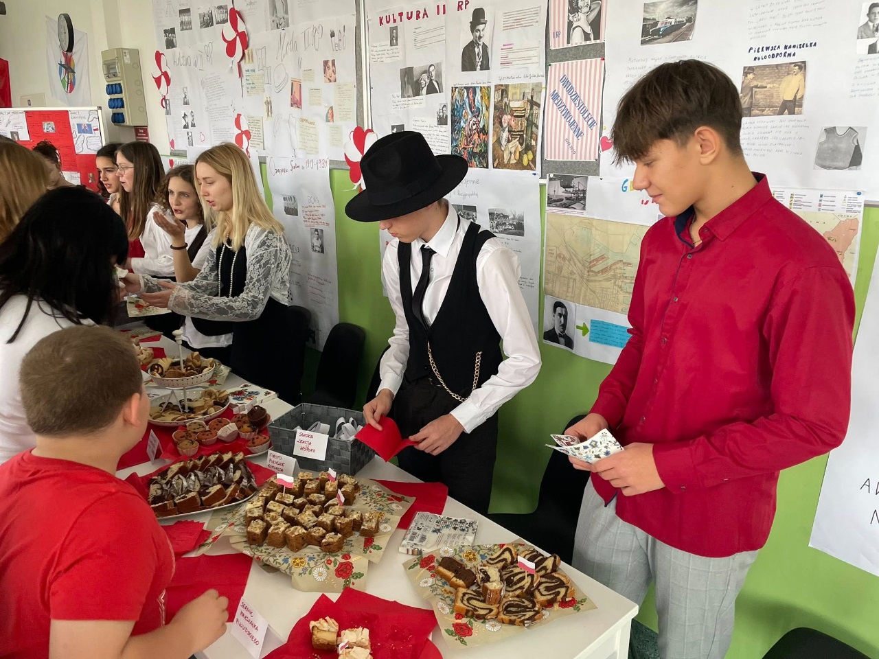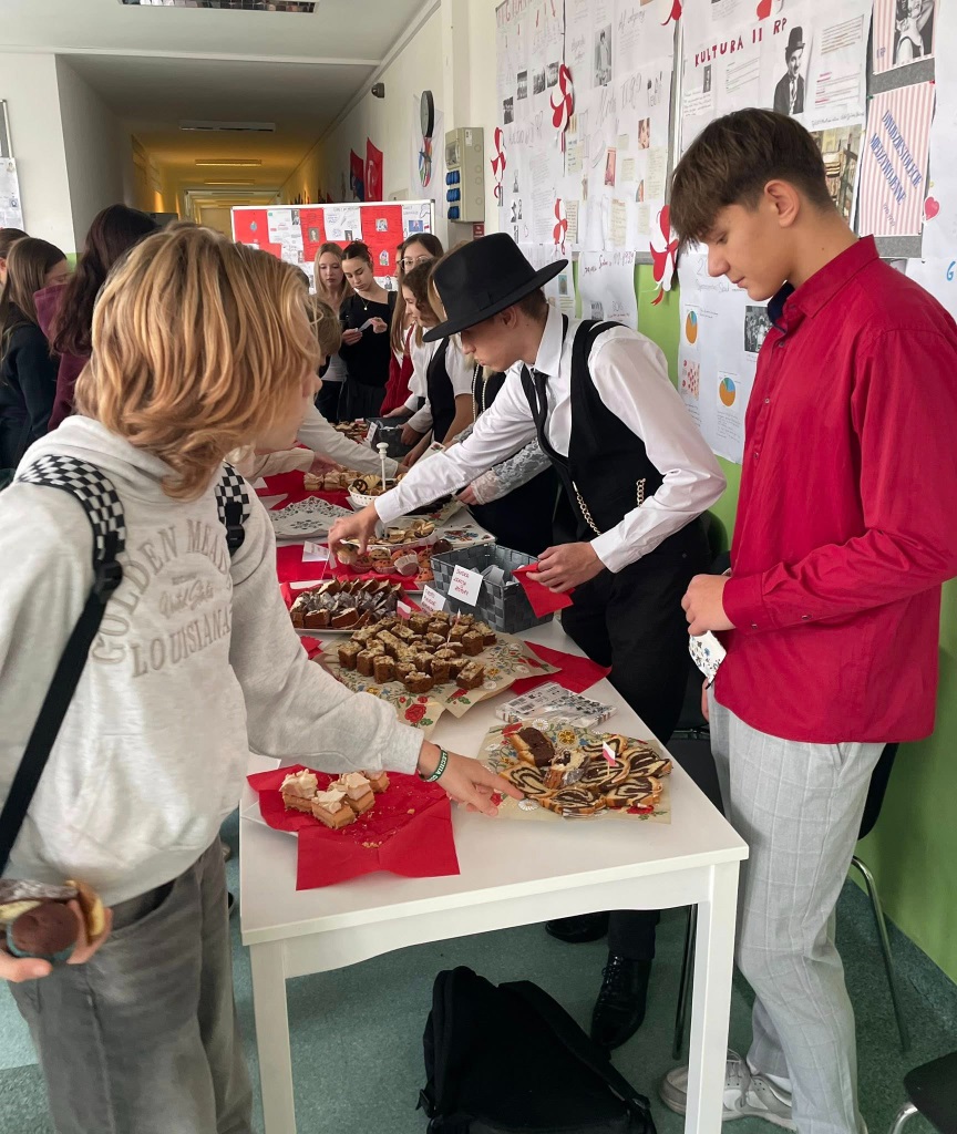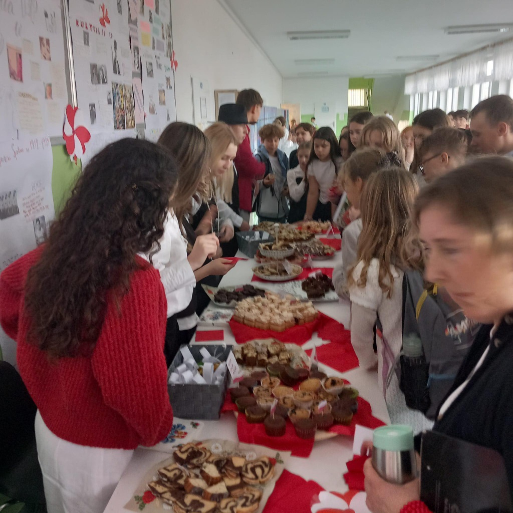 W piątek wspólnie, z dumą, odśpiewaliśmy hymn narodowy. Uczniowie przygotowali wspaniałe dekoracje, plakaty i piękne stroje. Nie zabrakło też kawiarenki patriotycznej, gdzie można było skosztować słodkości i dowiedzieć się czegoś o historii Polski.
