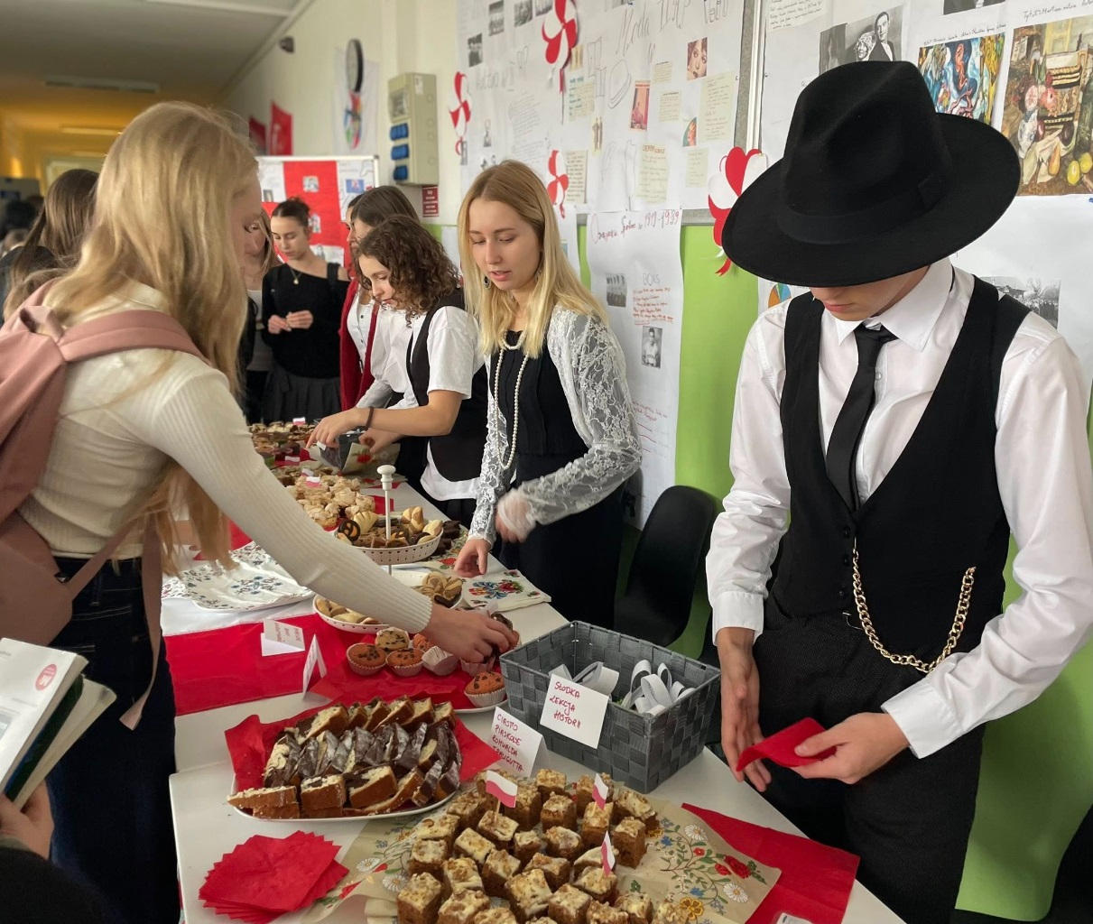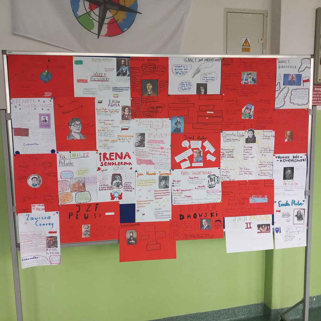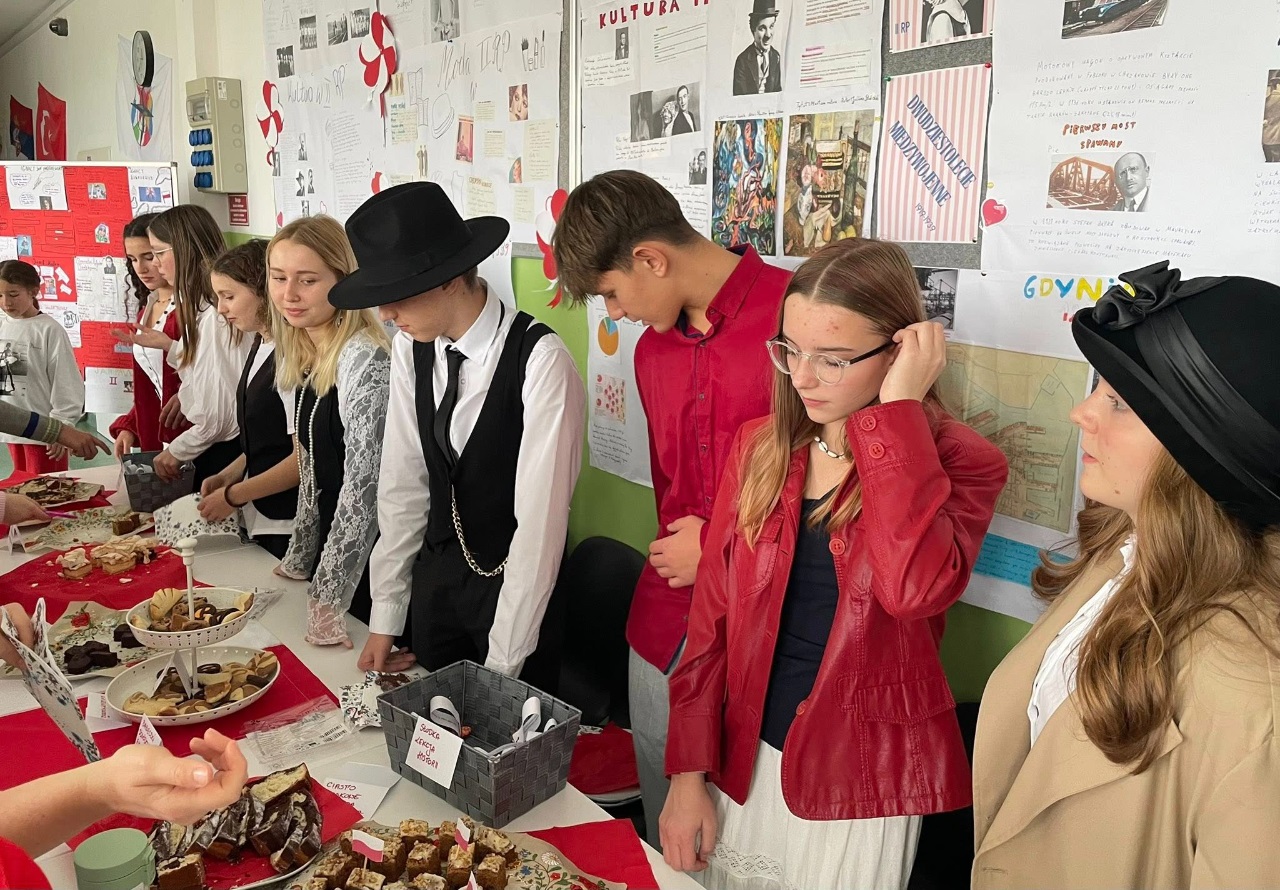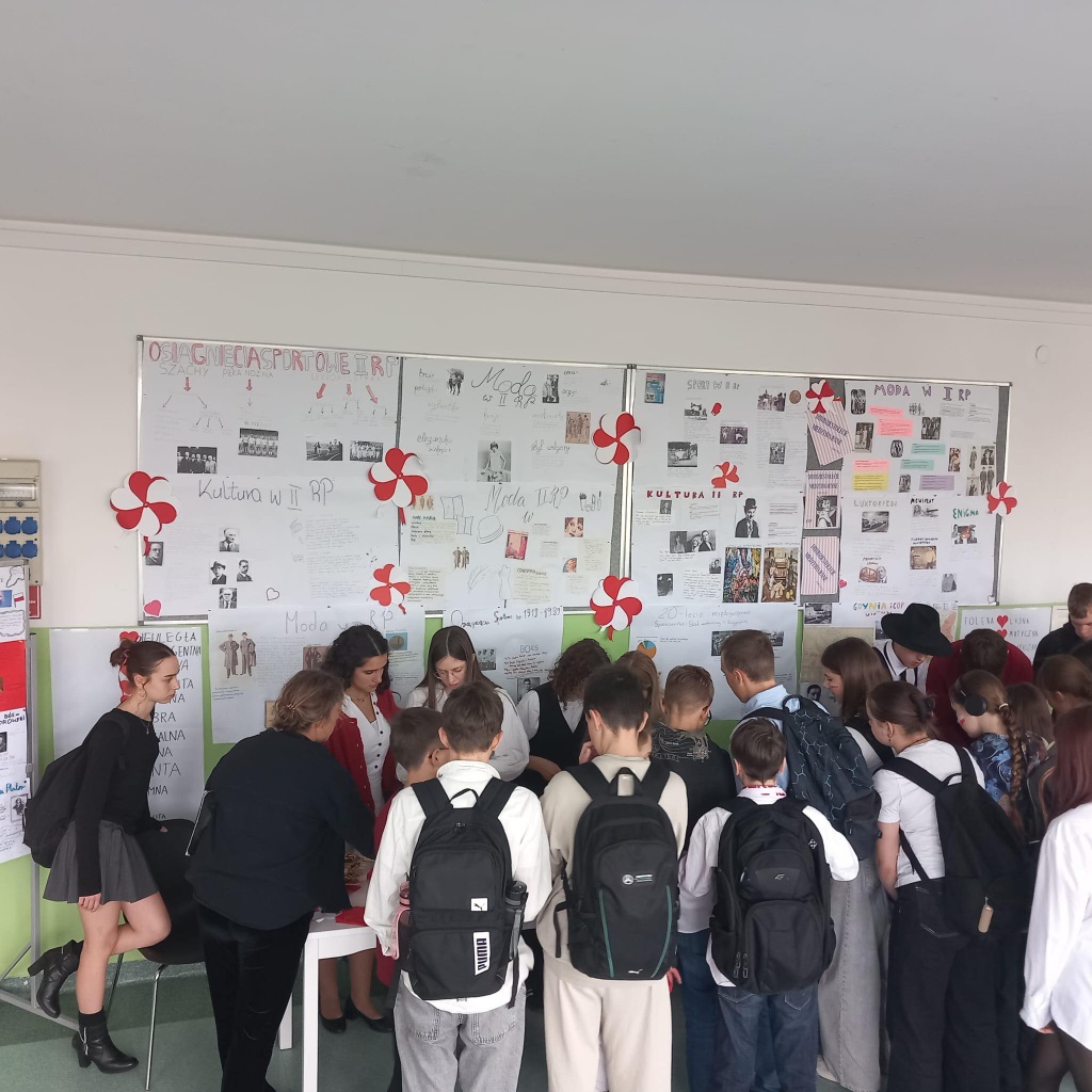 W piątek wspólnie, z dumą, odśpiewaliśmy hymn narodowy. Uczniowie przygotowali wspaniałe dekoracje, plakaty i piękne stroje. Nie zabrakło też kawiarenki patriotycznej, gdzie można było skosztować słodkości i dowiedzieć się czegoś o historii Polski.