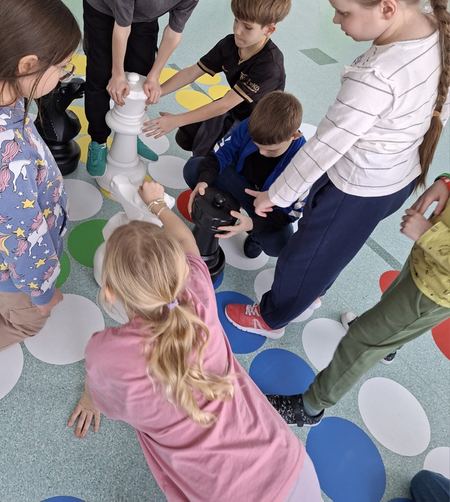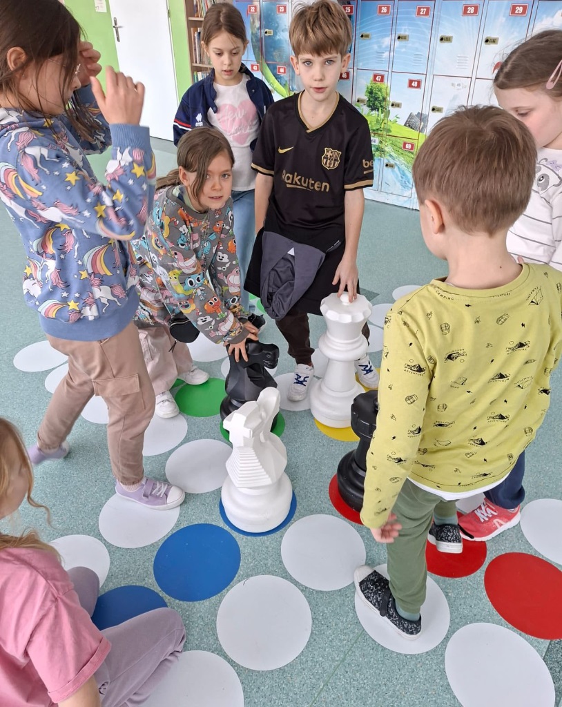 Nasze szkolne gry korytarzowe posłużyły dzieciom do ćwiczeń języka niemieckiego, poprzez połączenie pionków szachowych i planszy chińczyka. Dzieci rozwijały nie tylko kompetencje językowe, lecz także komunikację, współpracę i krytyczne myślenie.