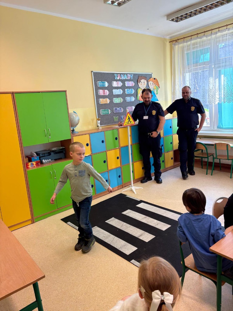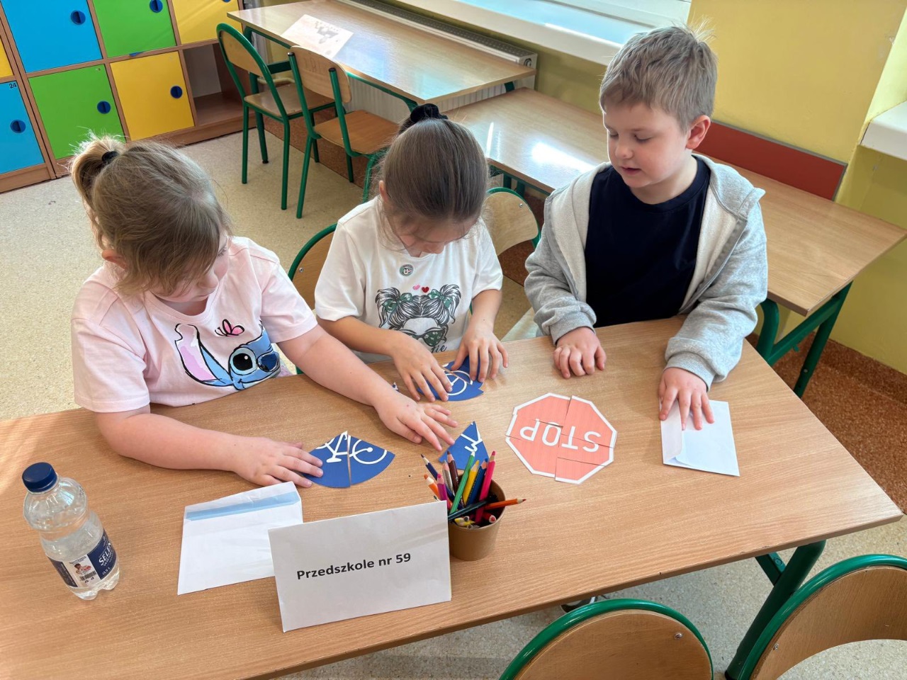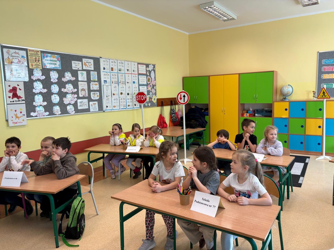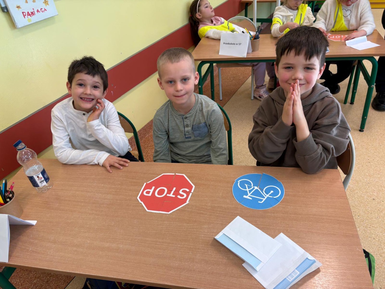 Mali uczestnicy z ogromnym zaangażowaniem i entuzjazmem podejmowali kolejne turniejowe wyzwania. Rozwiązywali zagadki dotyczące zasad bezpieczeństwa, odpowiadali na pytania oraz prezentowali, jak prawidłowo i bezpiecznie przechodzić przez przejście dla pieszych. Przedszkolaki wykazały się dużą wiedzą oraz świetnym przygotowaniem.
