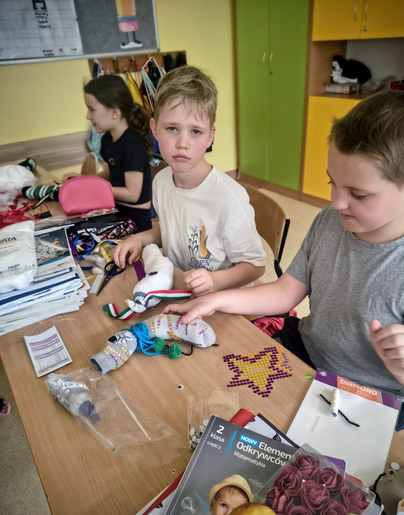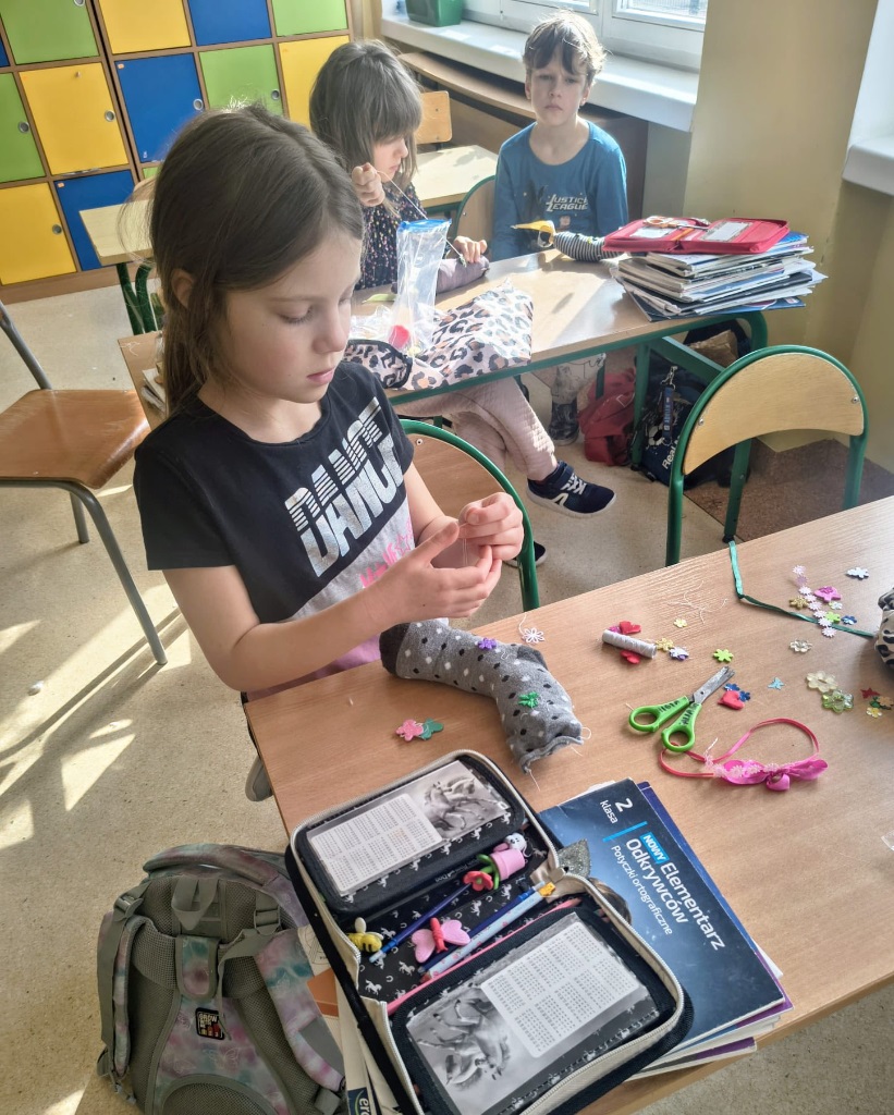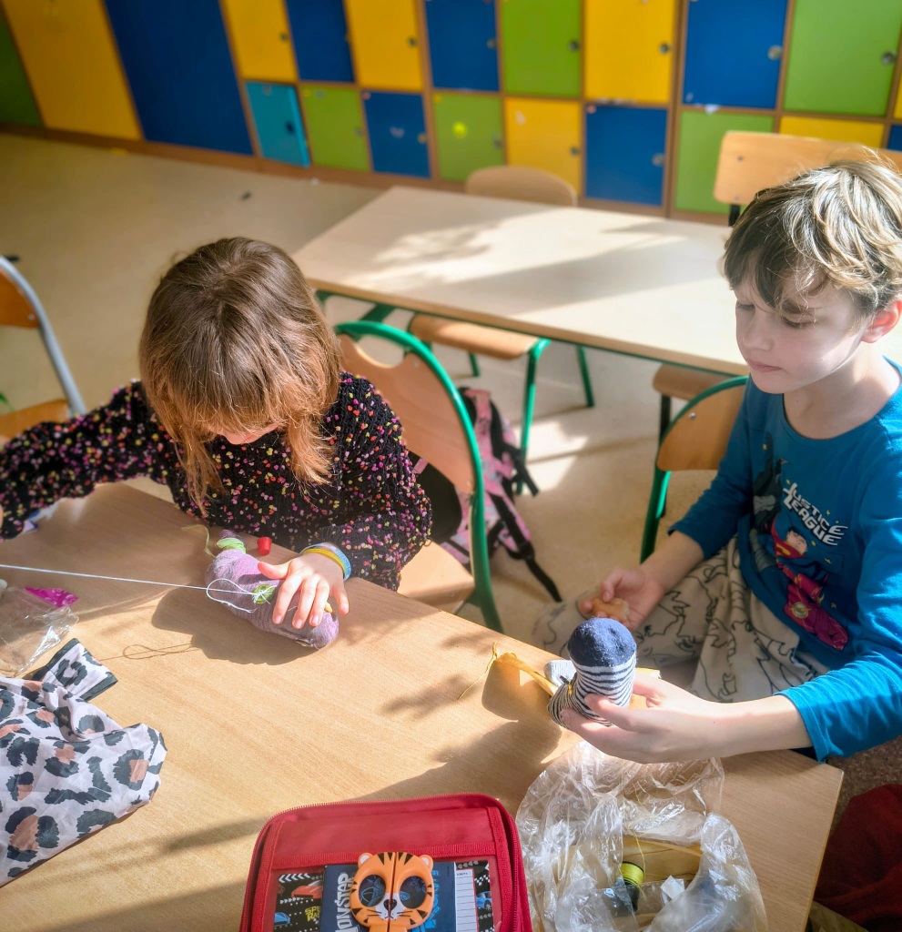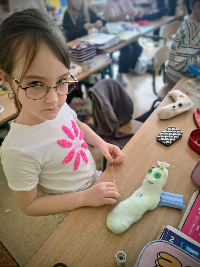 Twórcze podsumowanie pracy z lekturą "Niesamowite przygody dziesięciu skarpetek", która zdobyła serca uczniów klasy 2a. Bohaterowie książki stali się inspiracją do stworzenia własnych skarpetkowych pluszaków.