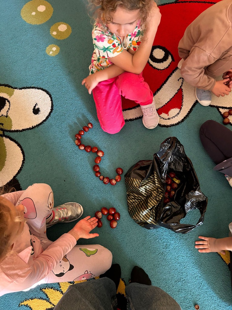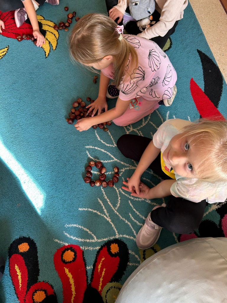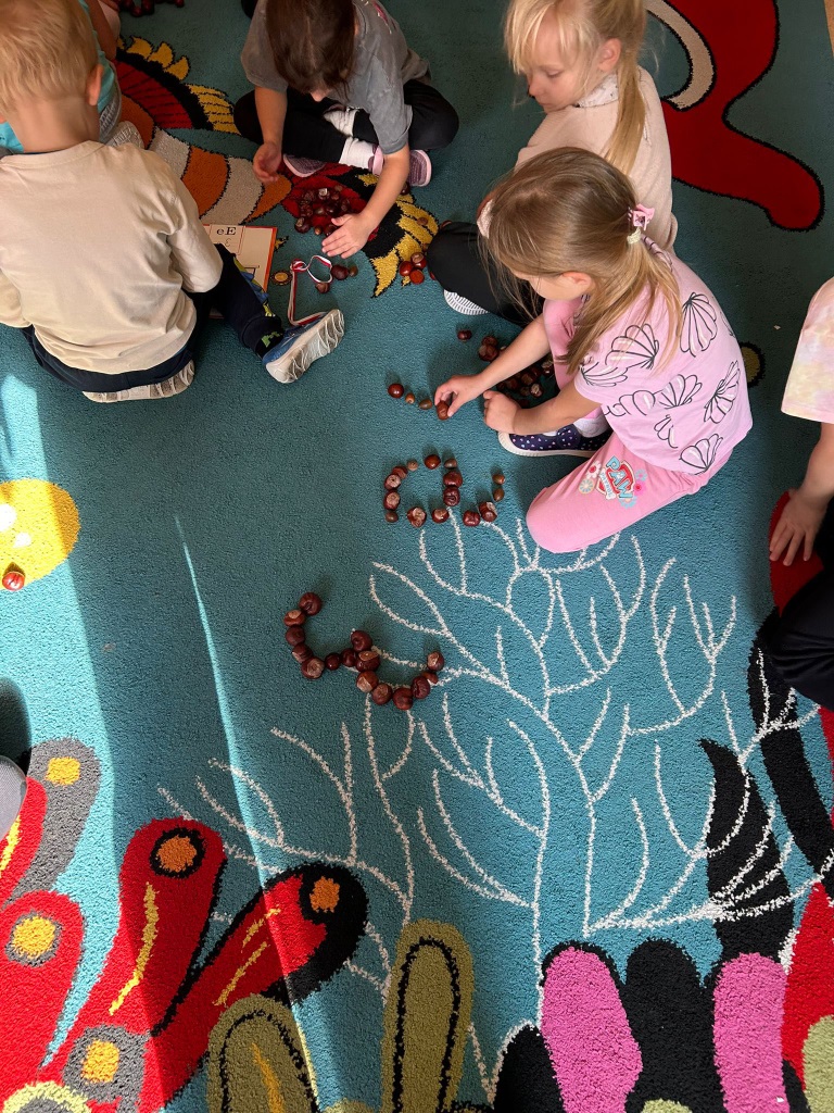 Poznaliśmy literkę „E”, którą później układaliśmy z kasztanów