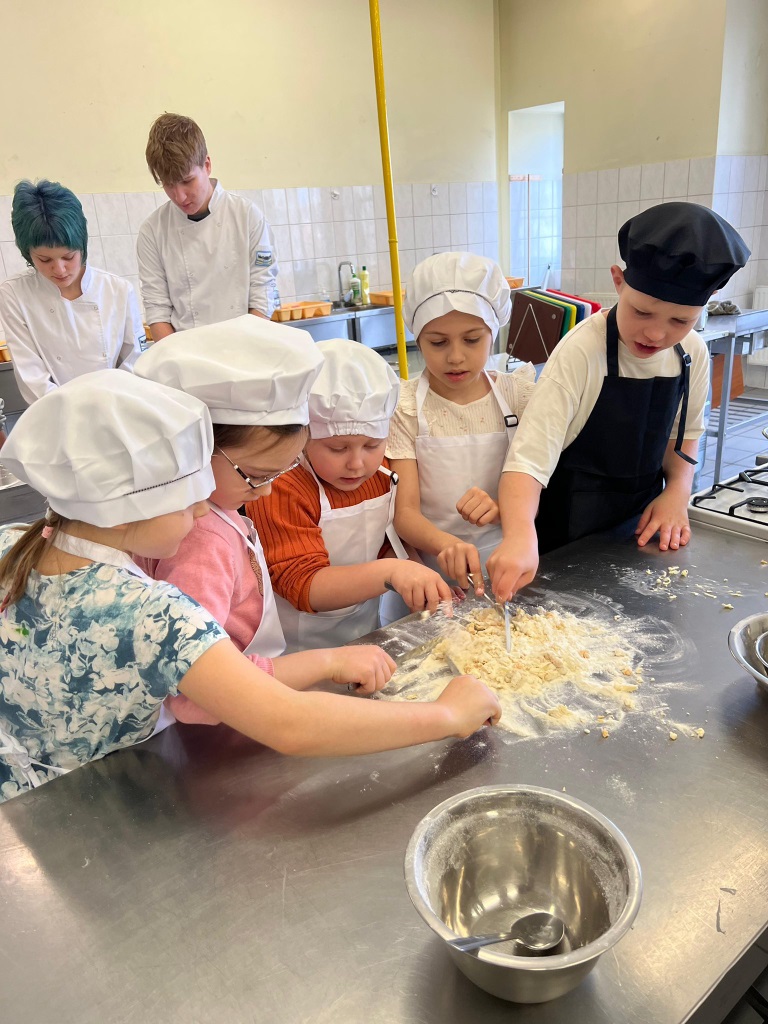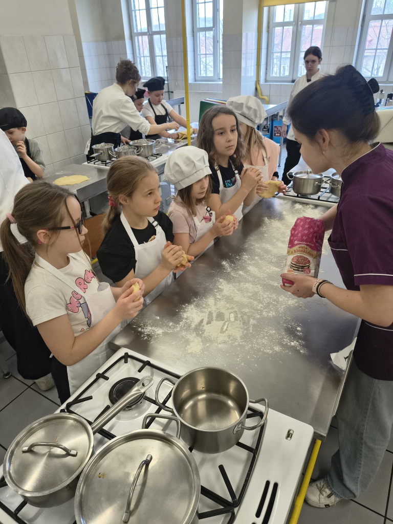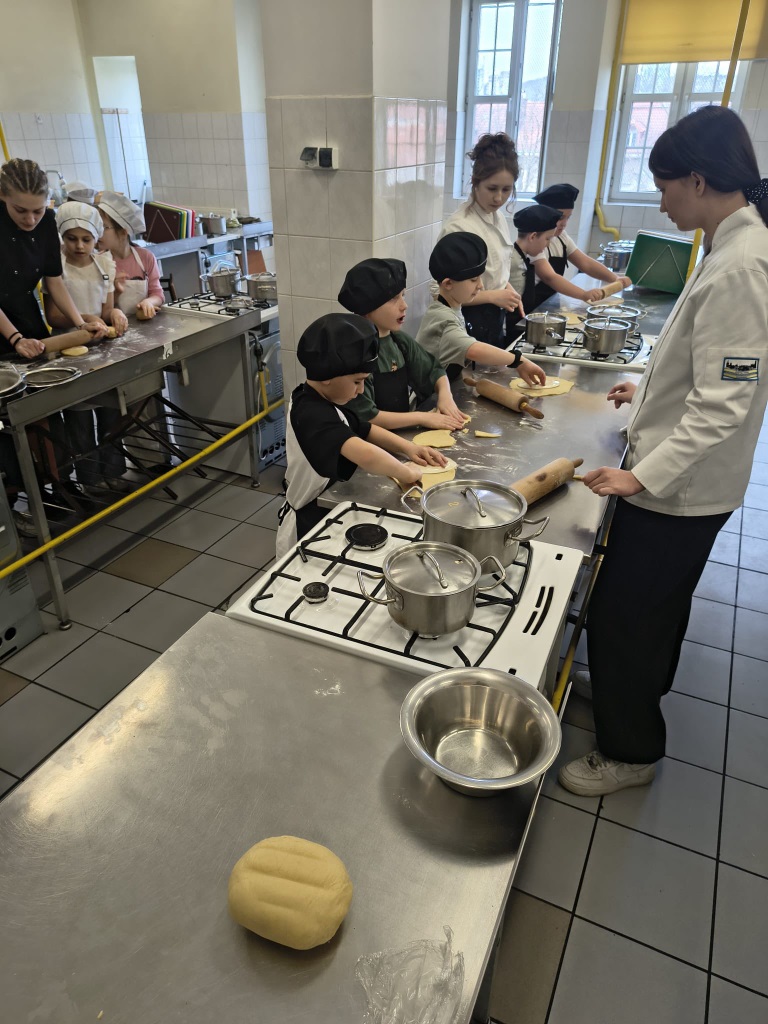 Zajęcia kulinarne, to jest to, co lubimy! Uczniowie klasy 2a zostali zaproszeni do udziału w warsztatach kulinarnych prowadzonych przez ich starszych kolegów z Zespołu Szkół Gastronomiczno-Hotelarskich w Gdańsku. Mieliśmy okazję samodzielnie wykonać pyszne mazurki, uczestniczyć w lekcji o zdrowym odżywianiu, a także zobaczyć, czego uczą się starsi uczniowie w szkole średniej. Ogromne podziękowania dla Mamy Mateusza, która zorganizowała nam te pełne wrażeń wyjście.