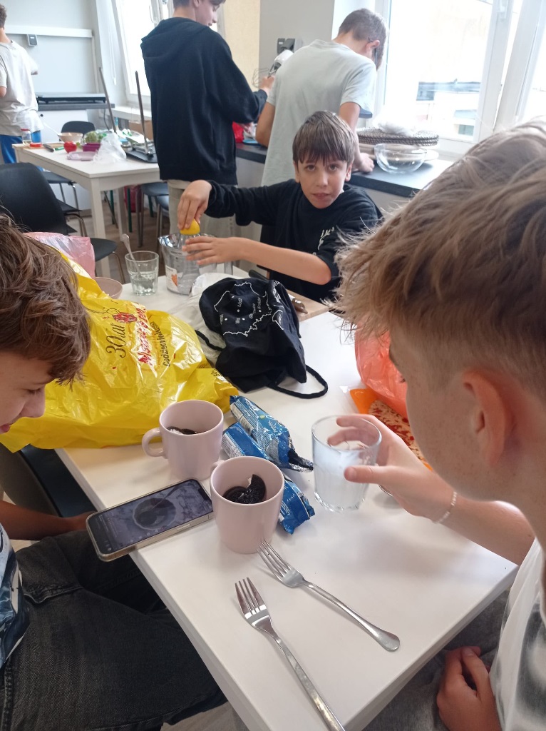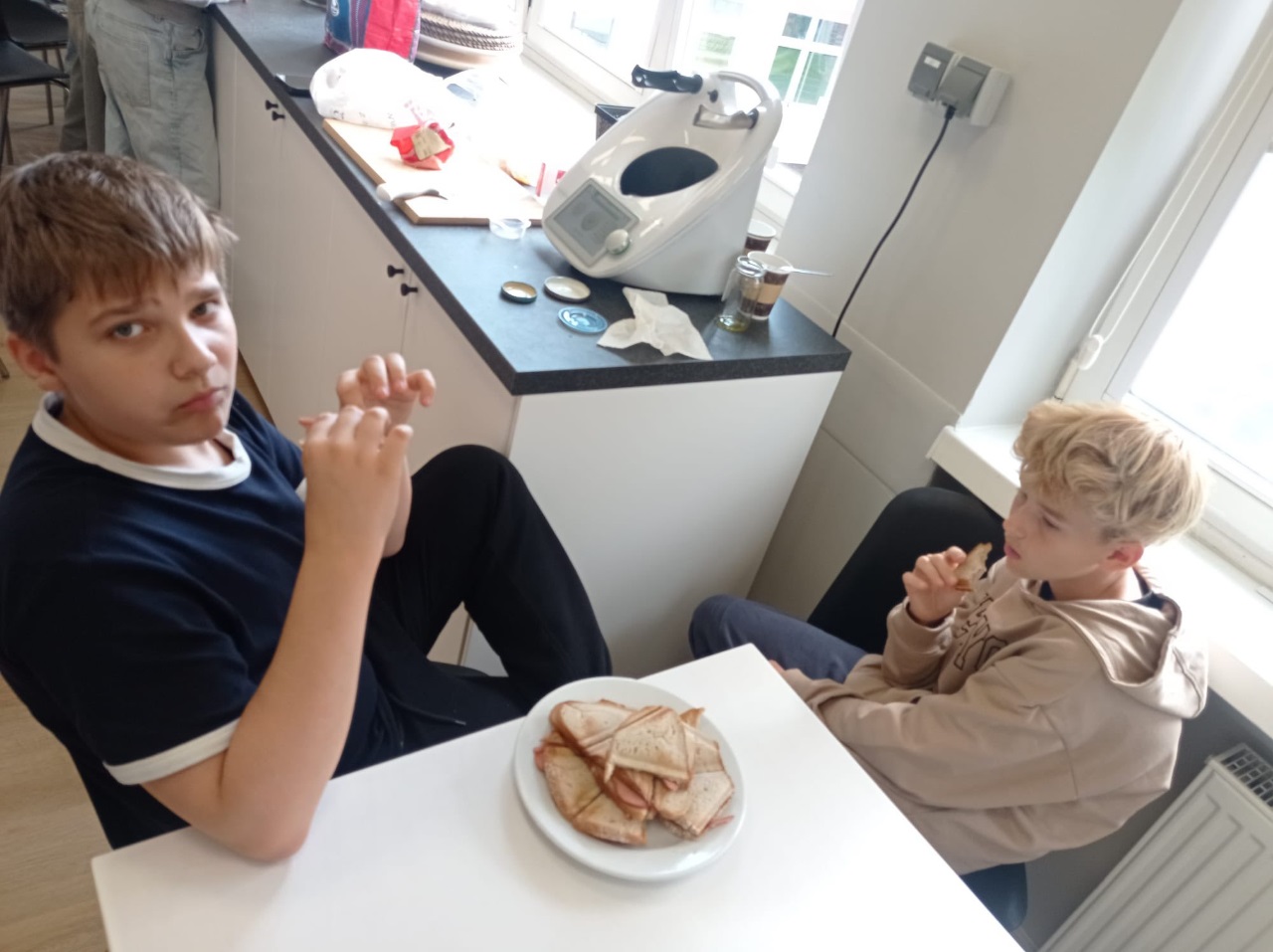 Na zajęciach plastyki uczniowie 7b rozwijali swoje talenty kulinarne wykazując się niezwykłą kreatywnością i samodzielnością w przygotowaniu ulubionych potraw.