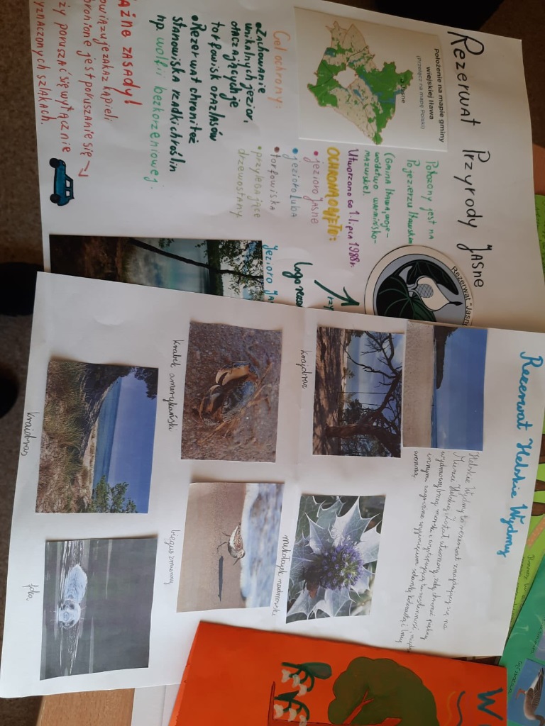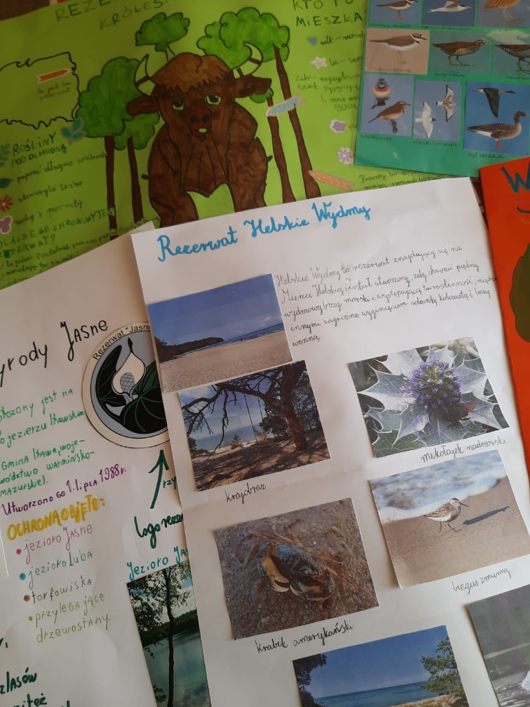 Uczniowie klasy 3a, korzystając z różnych źródeł informacji, przygotowali ciekawe prace na temat rezerwatów w Polsce.