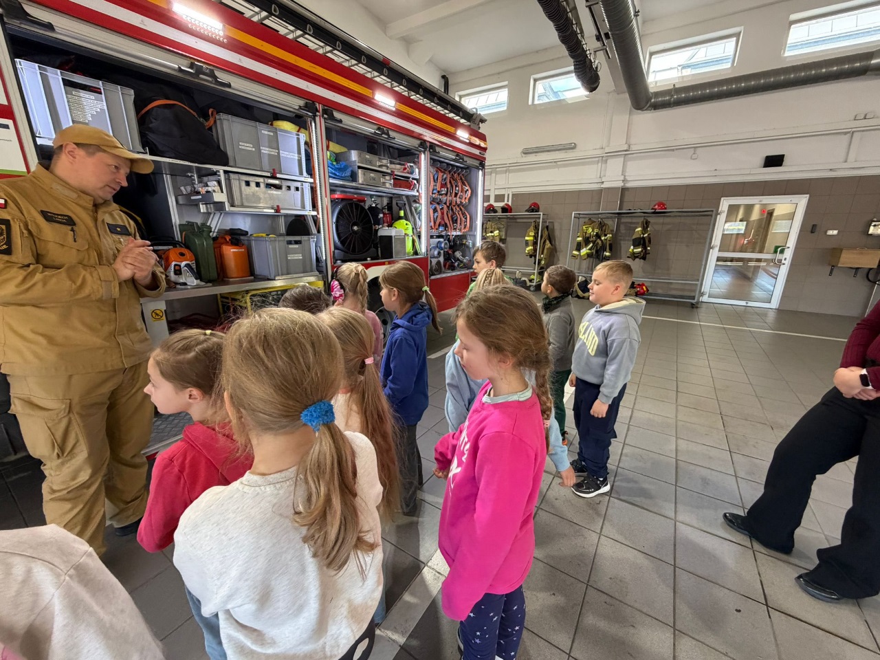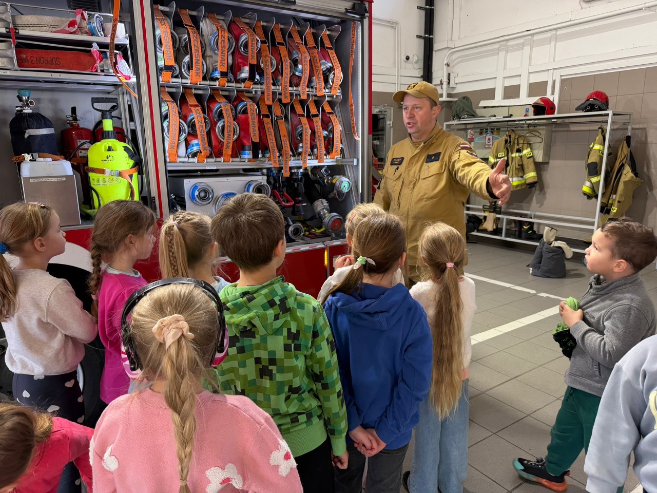 Zerówka odwiedziła straż pożarną, gdzie odbyły się warsztaty, na których dowiedzieliśmy się, jak wygląda wóz strażacki, jakie elementy zawiera oraz jak reagować w sytuacjach zagrożenia