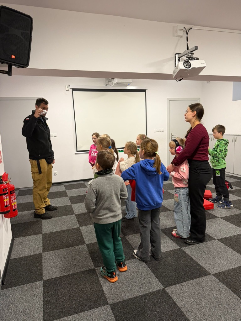Ćwiczyliśmy rozpoznawanie znaków ewakuacyjnych i dowiedzieliśmy się, jak ważne jest szybkie i odpowiedzialne reagowanie w niebezpiecznych sytuacjach.